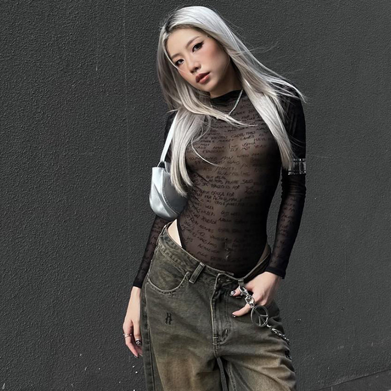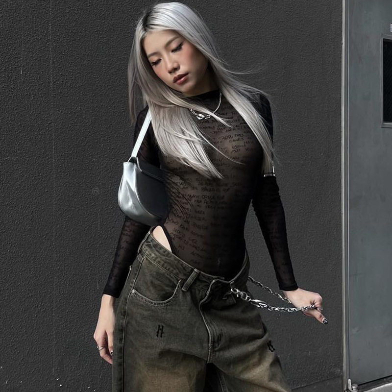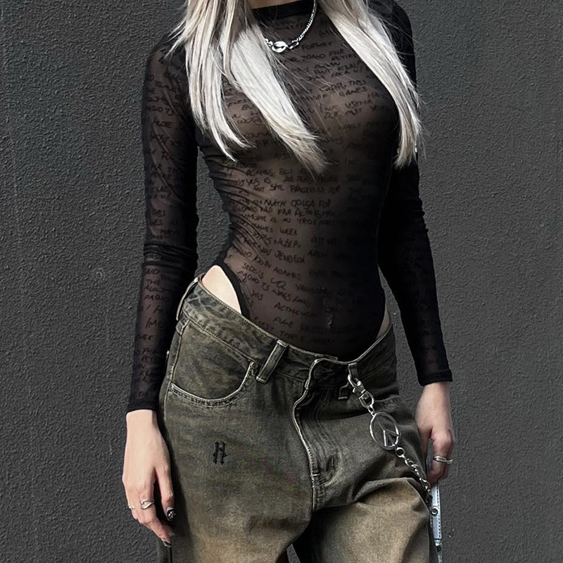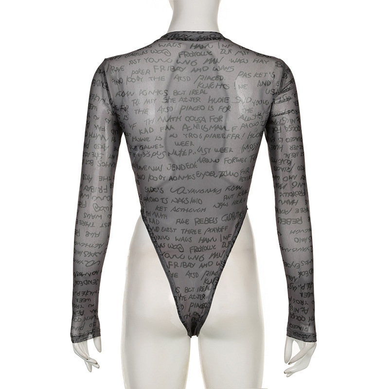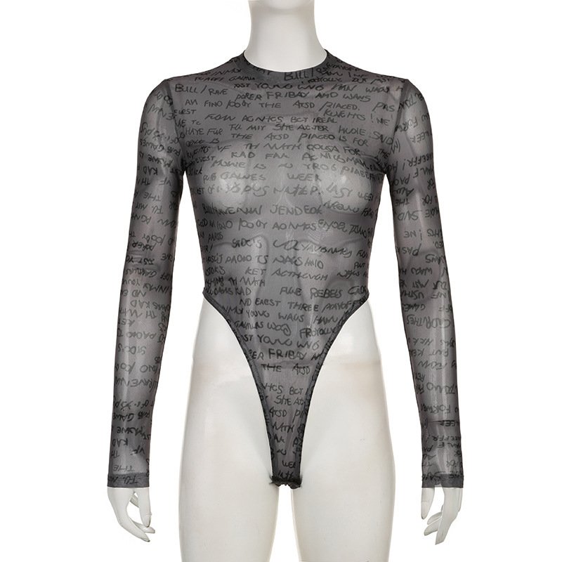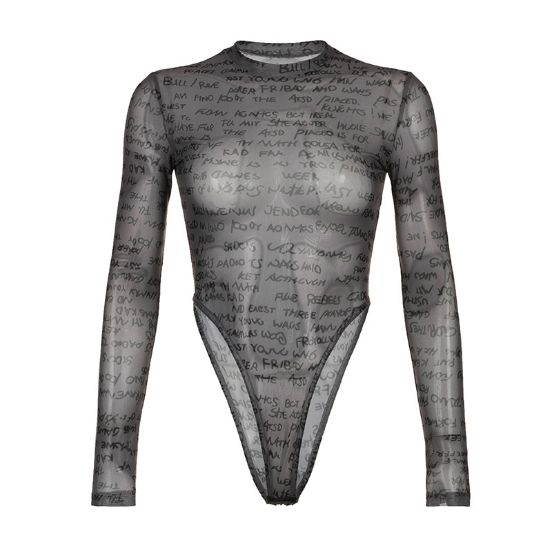 Women's Pure Color Mesh See-through Jumpsuit