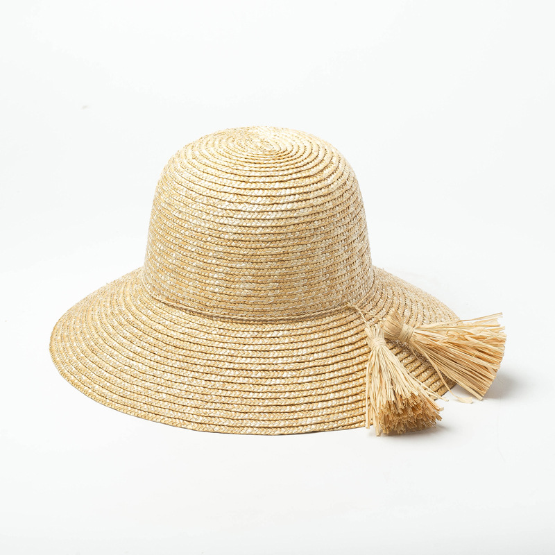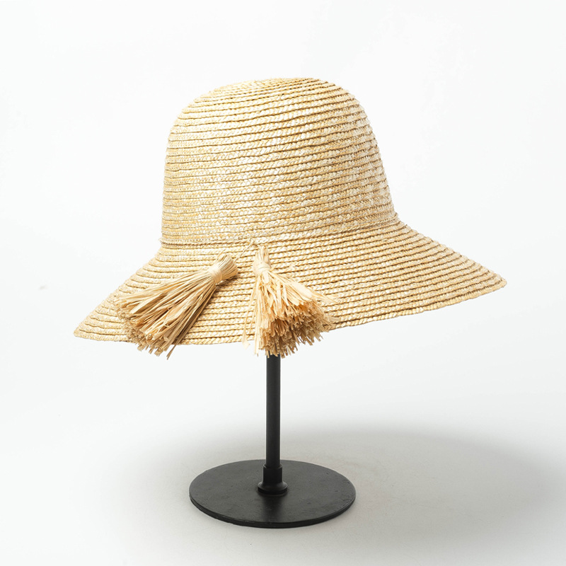 Women's Raffia Fringe Decorative Pot Straw Hat