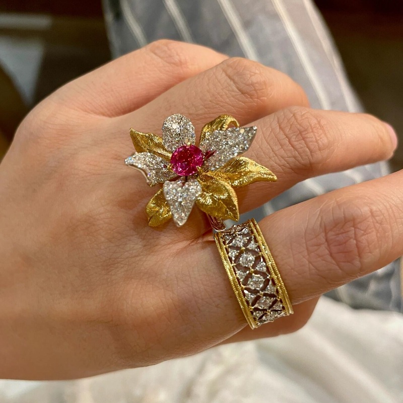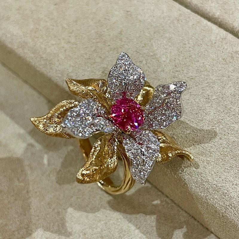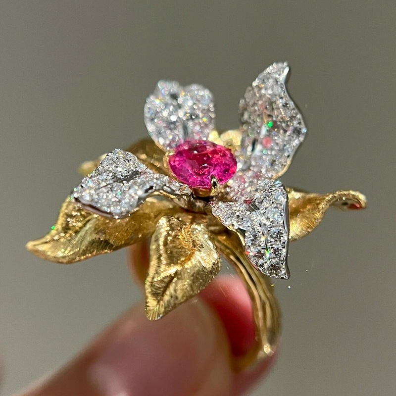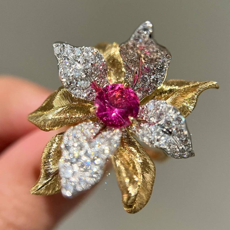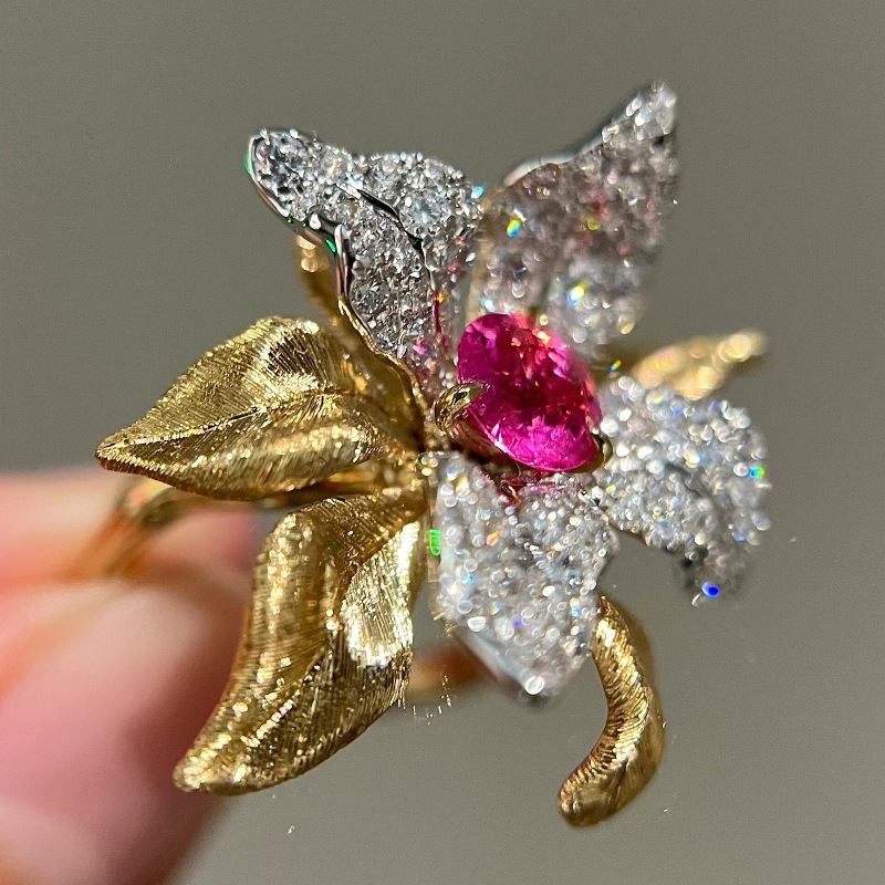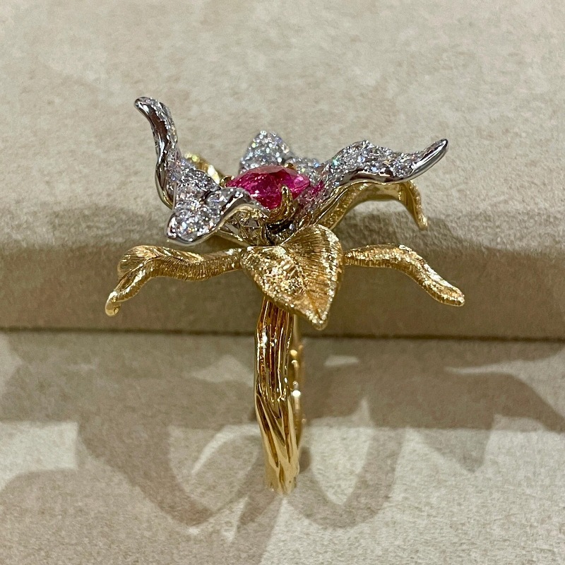 Color: red corundum flower ring