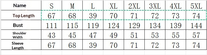 Sizes: S, M, L, 1XL, 2XL, 3XL, 4XL, 5XL