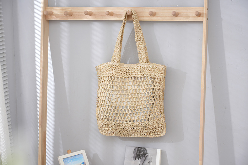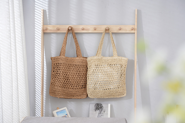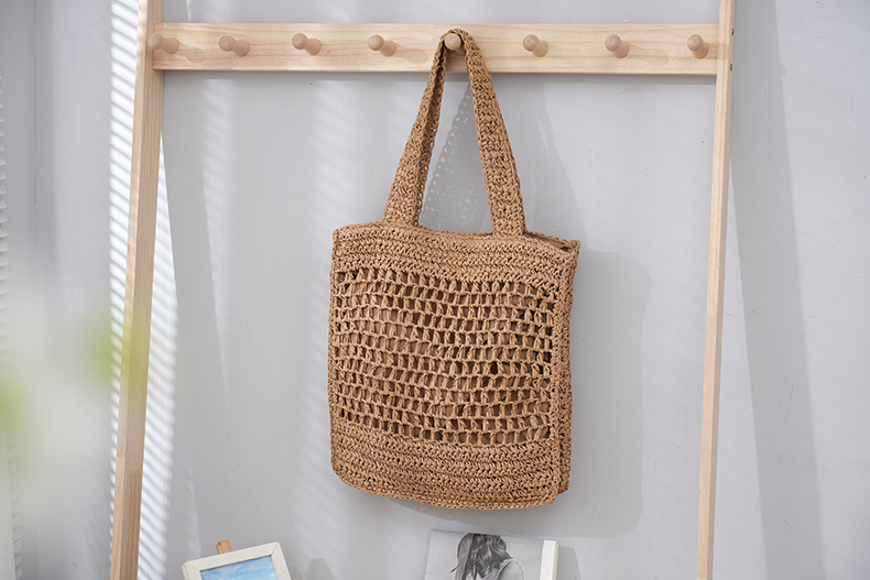 Women's Retro Artistic Beach Bag Paper String Hand-woven Beach Vacation Leisure Large Capacity Handbag