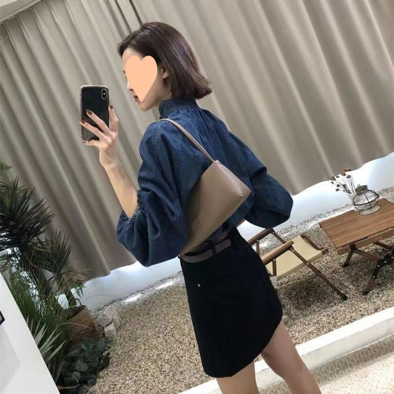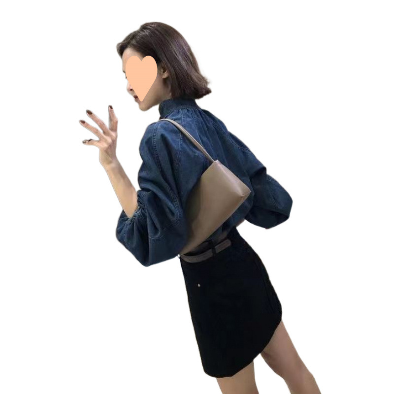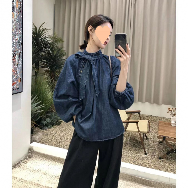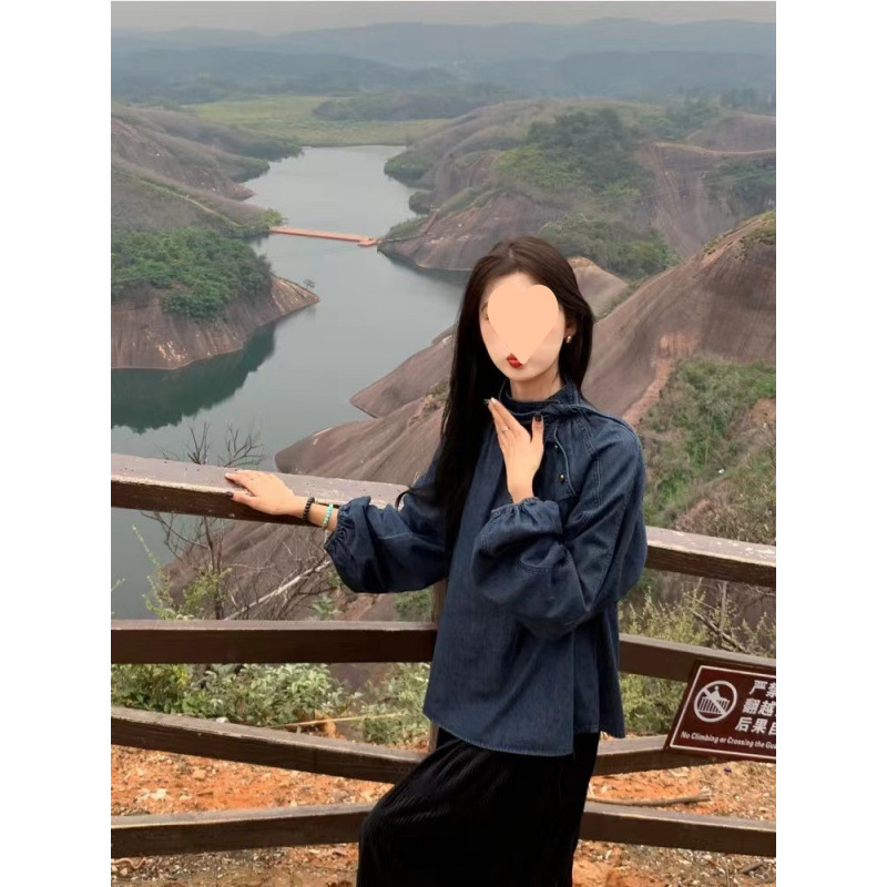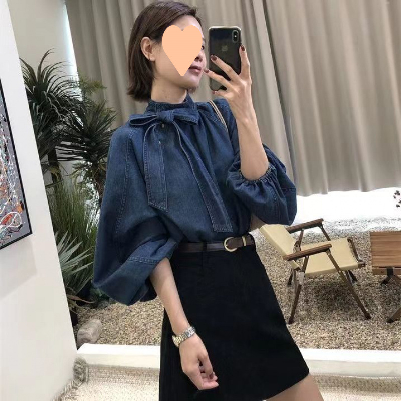 Women's Retro Casual Loose Collar Lace Up Denim Shirt