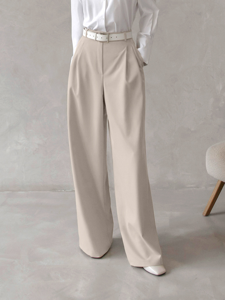 Women's Retro Classic Fashion Solid Color Loose High Waist Trousers