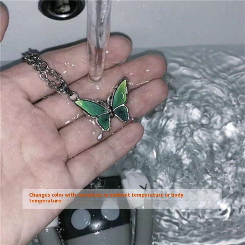 Color: temperature sensitive color changing butterfly-cross chain, temperature sensitive color changing butterfly-single pendant