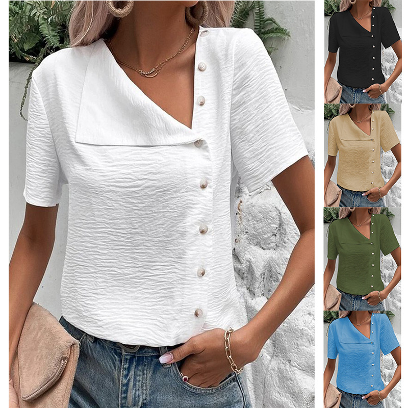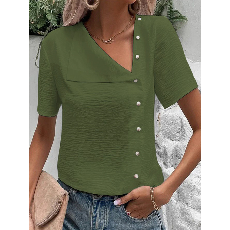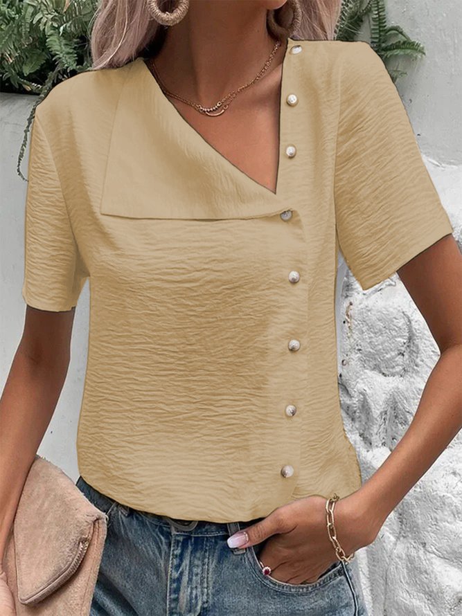Women's Retro Commuter Cotton And Linen Short Sleeve Shirt