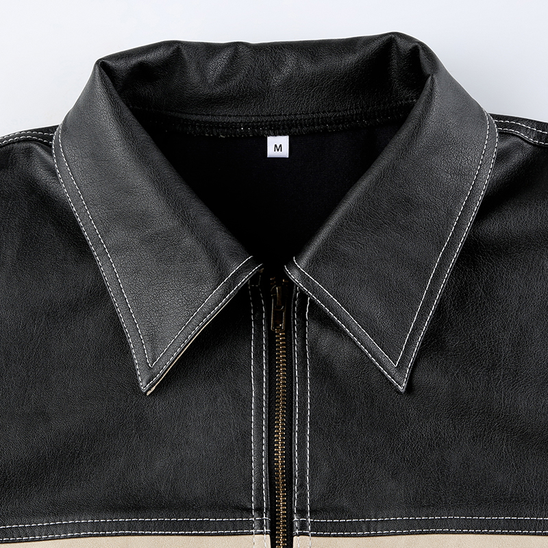 Women's Retro Contrast Color Split Leather Coat