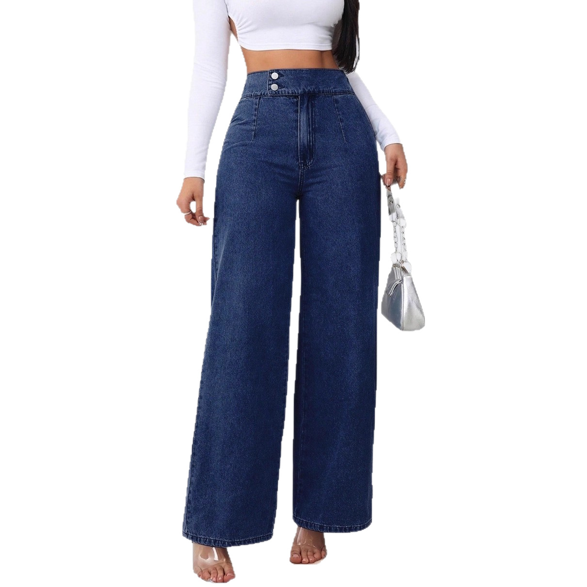Women's Retro Deep Blue High-Waist Wide-Leg Jeans