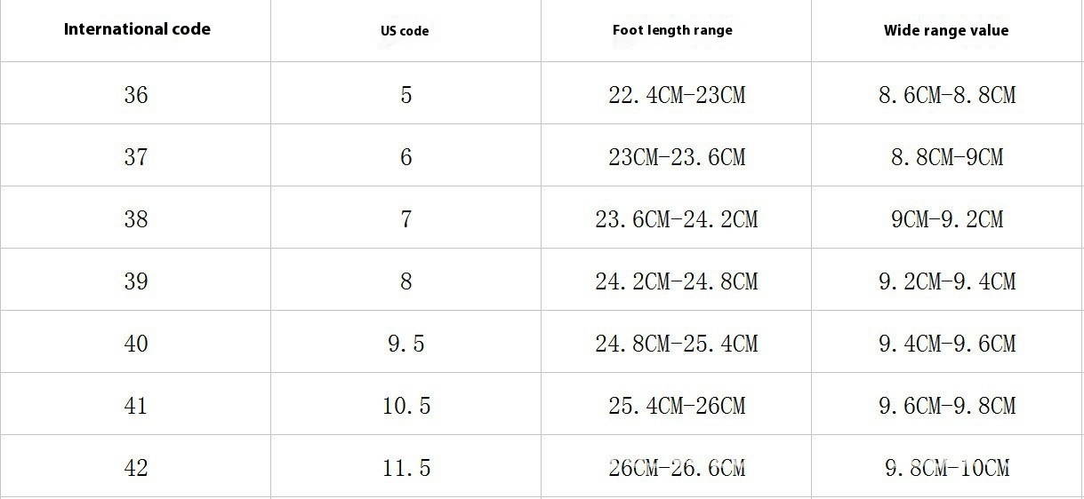 Size: 36, 37, 38, 39, 40, 41, 42