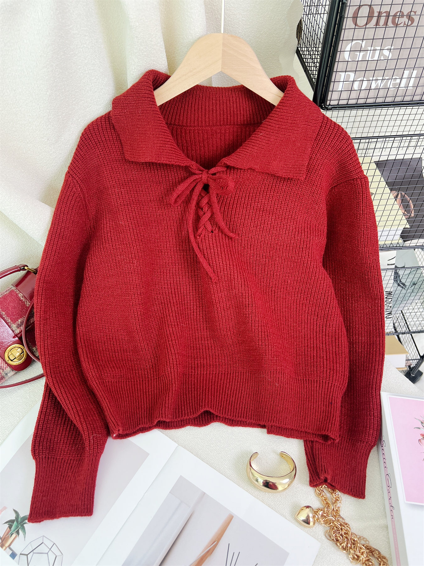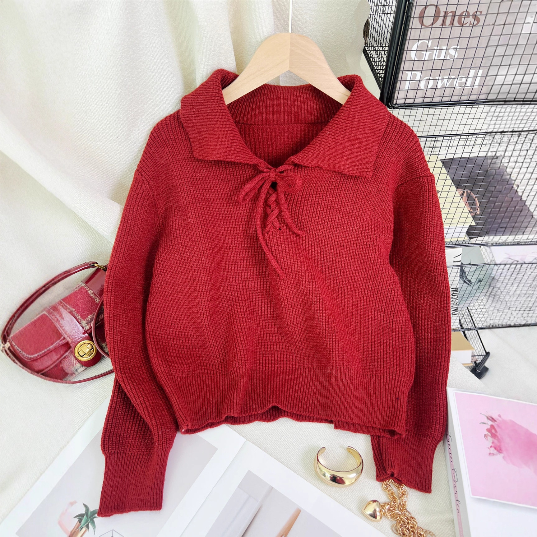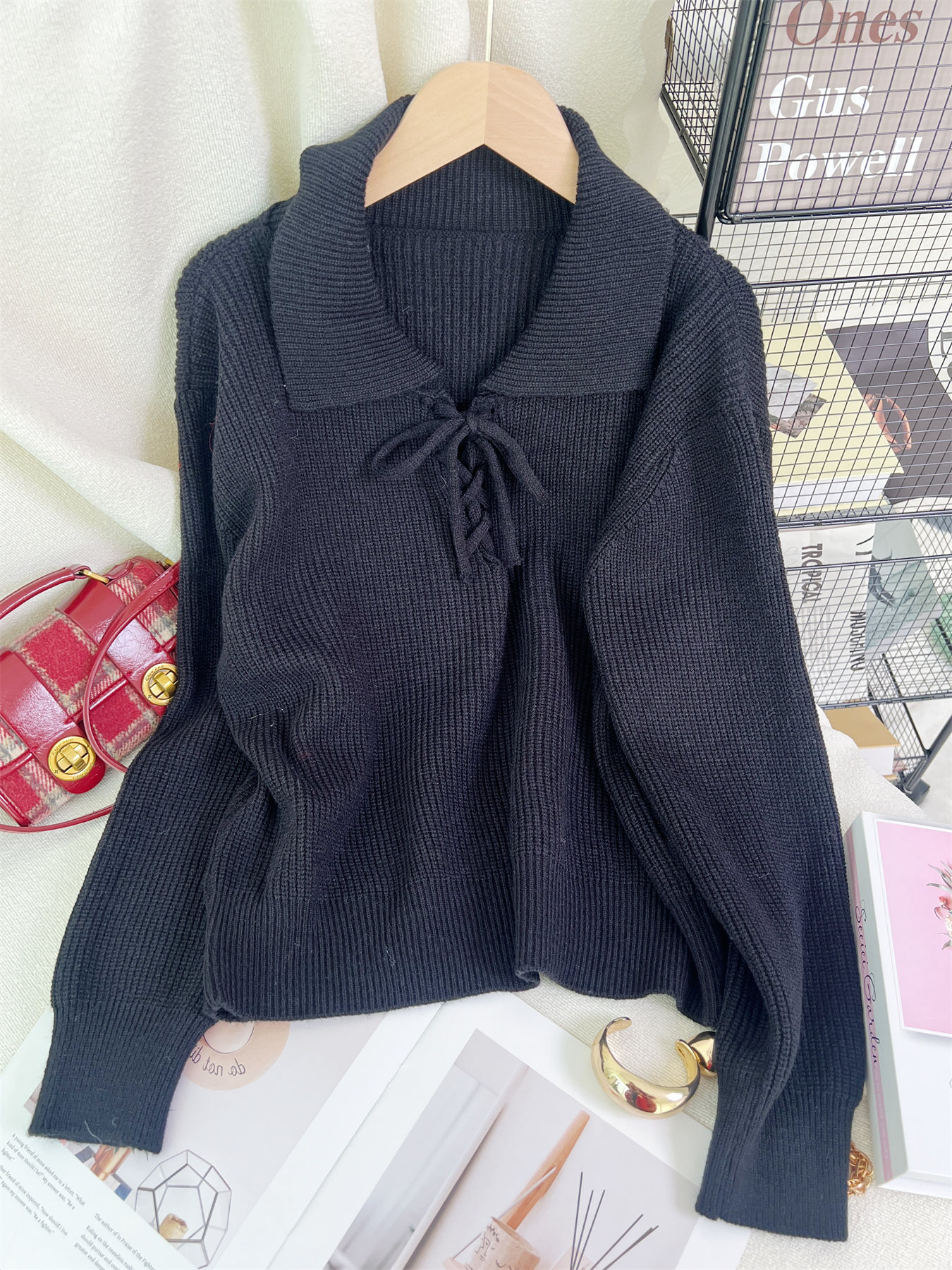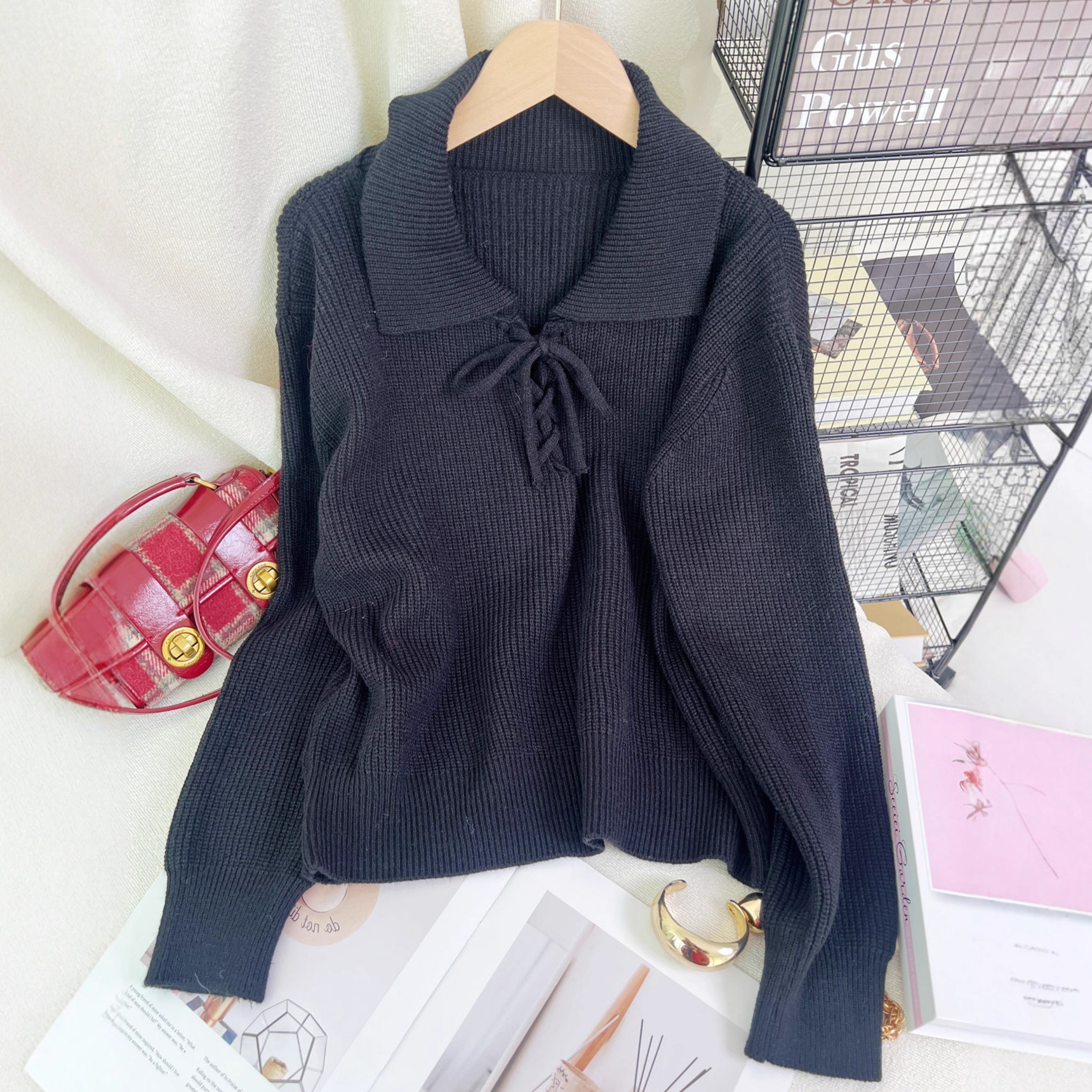 Women's Retro Lace-Up Long Sleeve Sweater