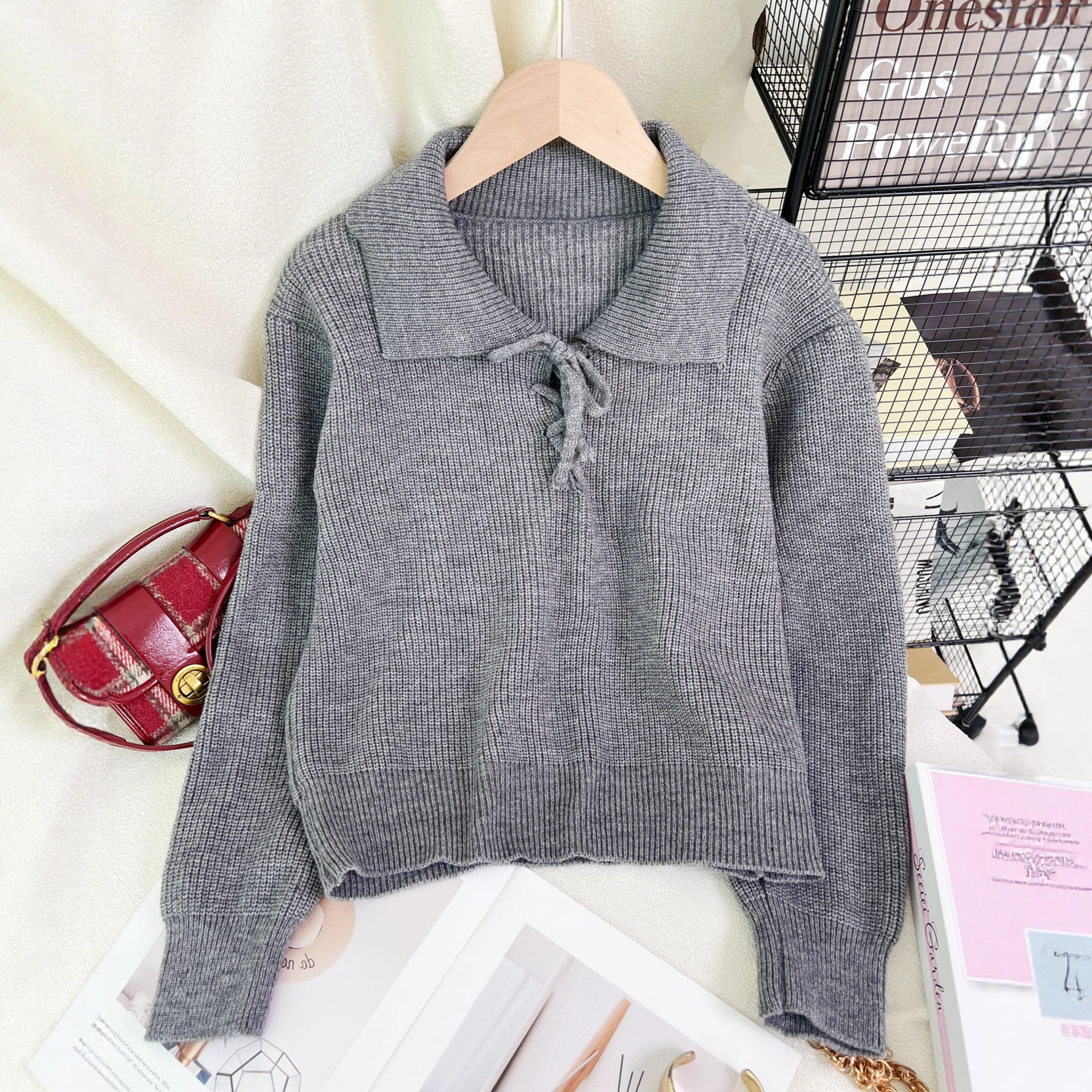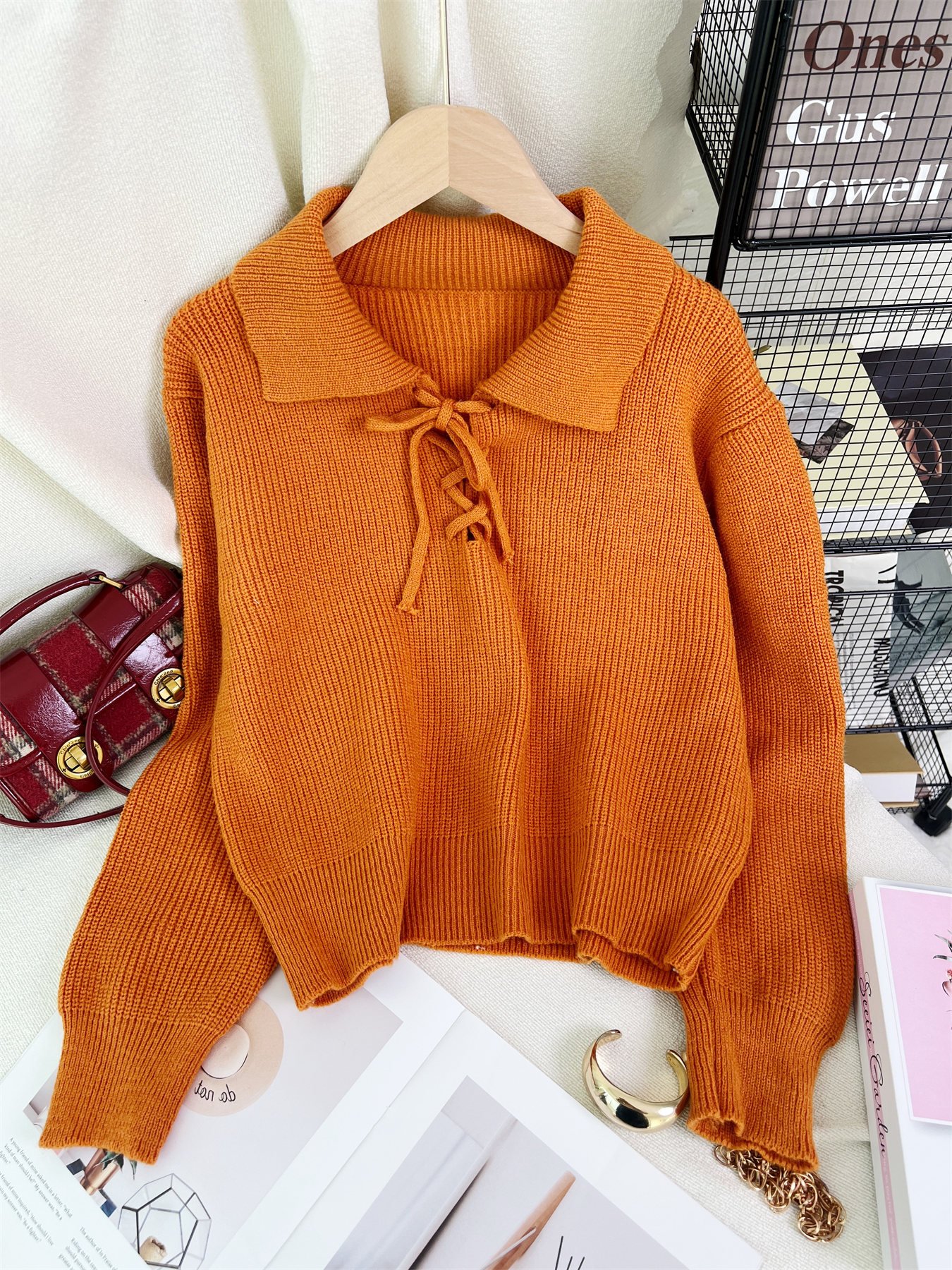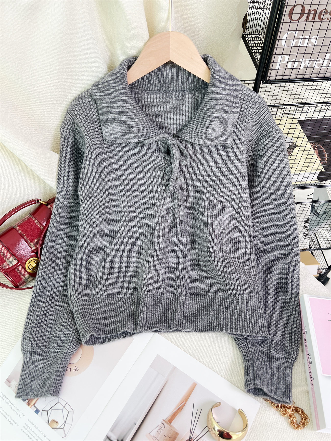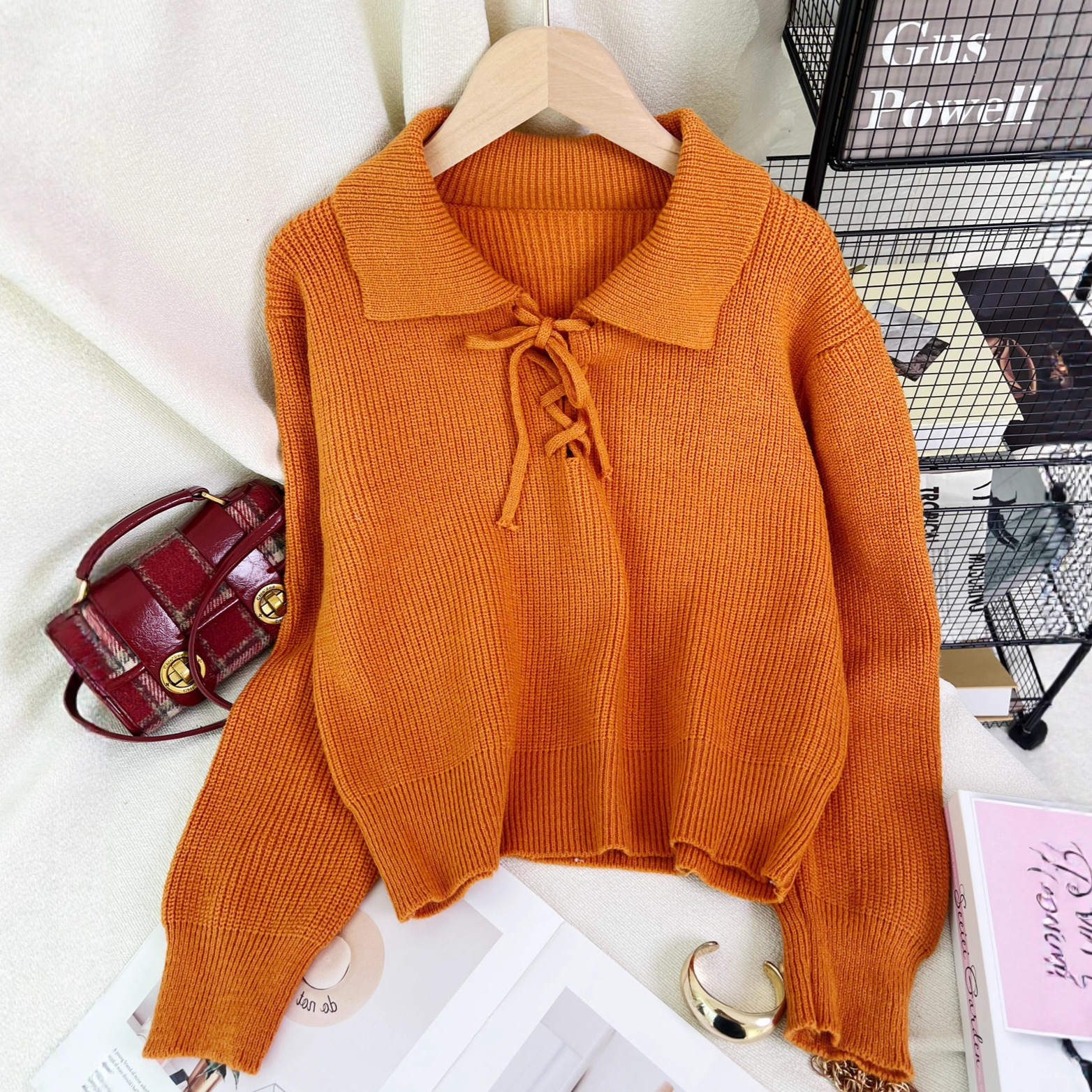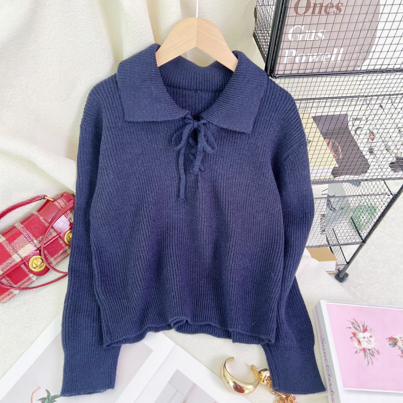 Women's Retro Lace-Up Long Sleeve Sweater