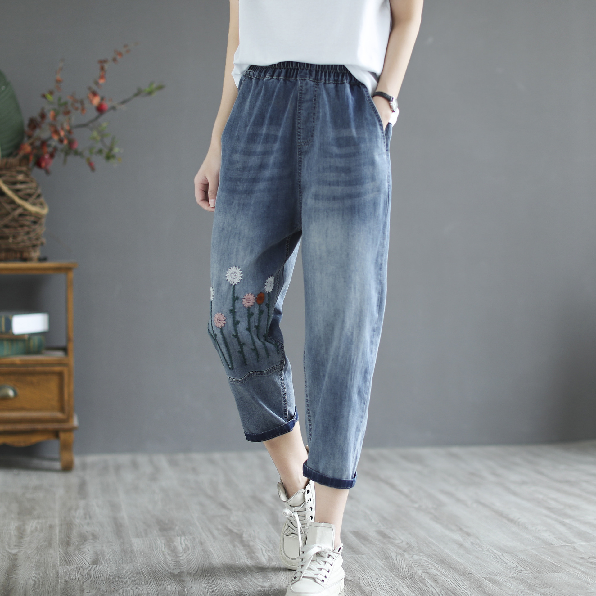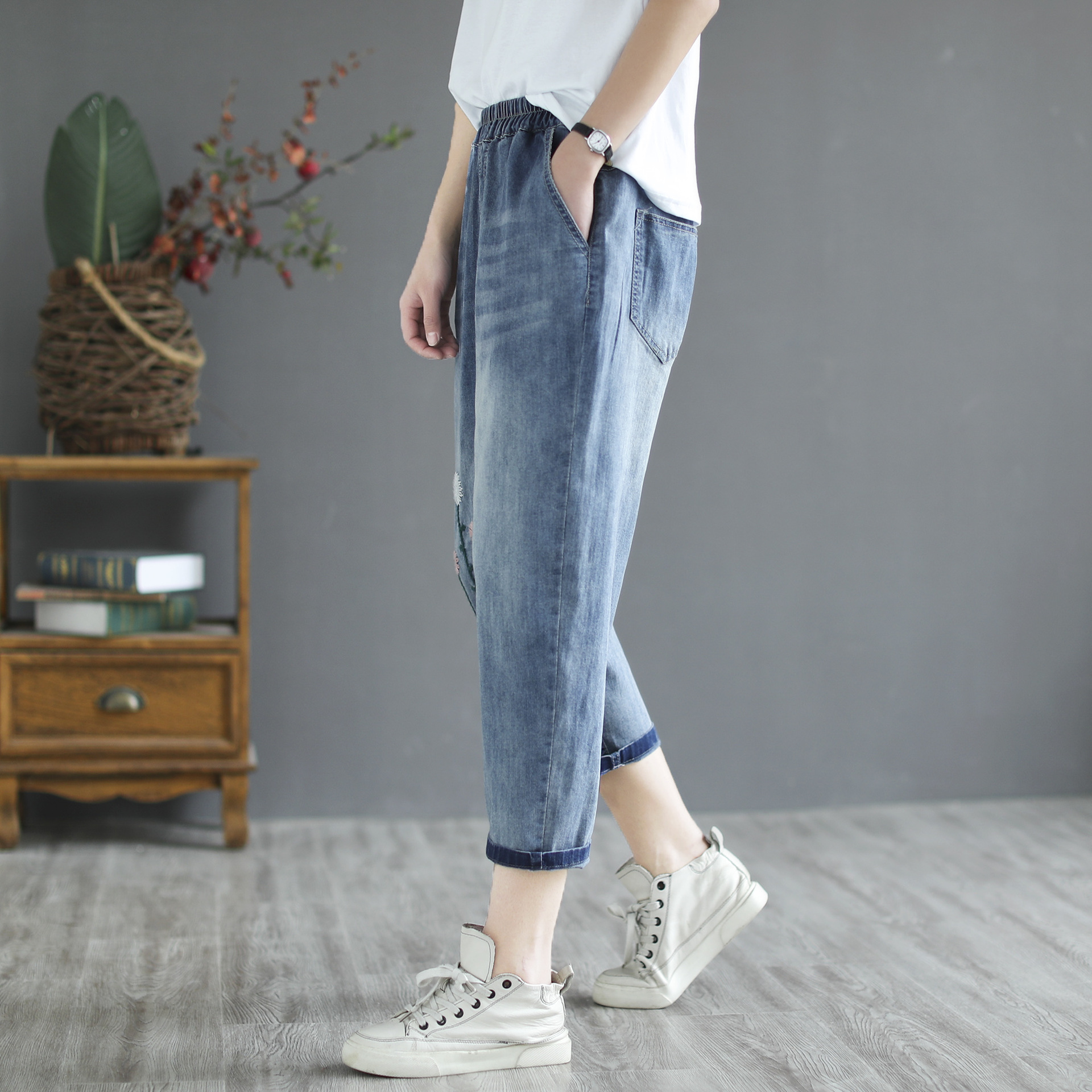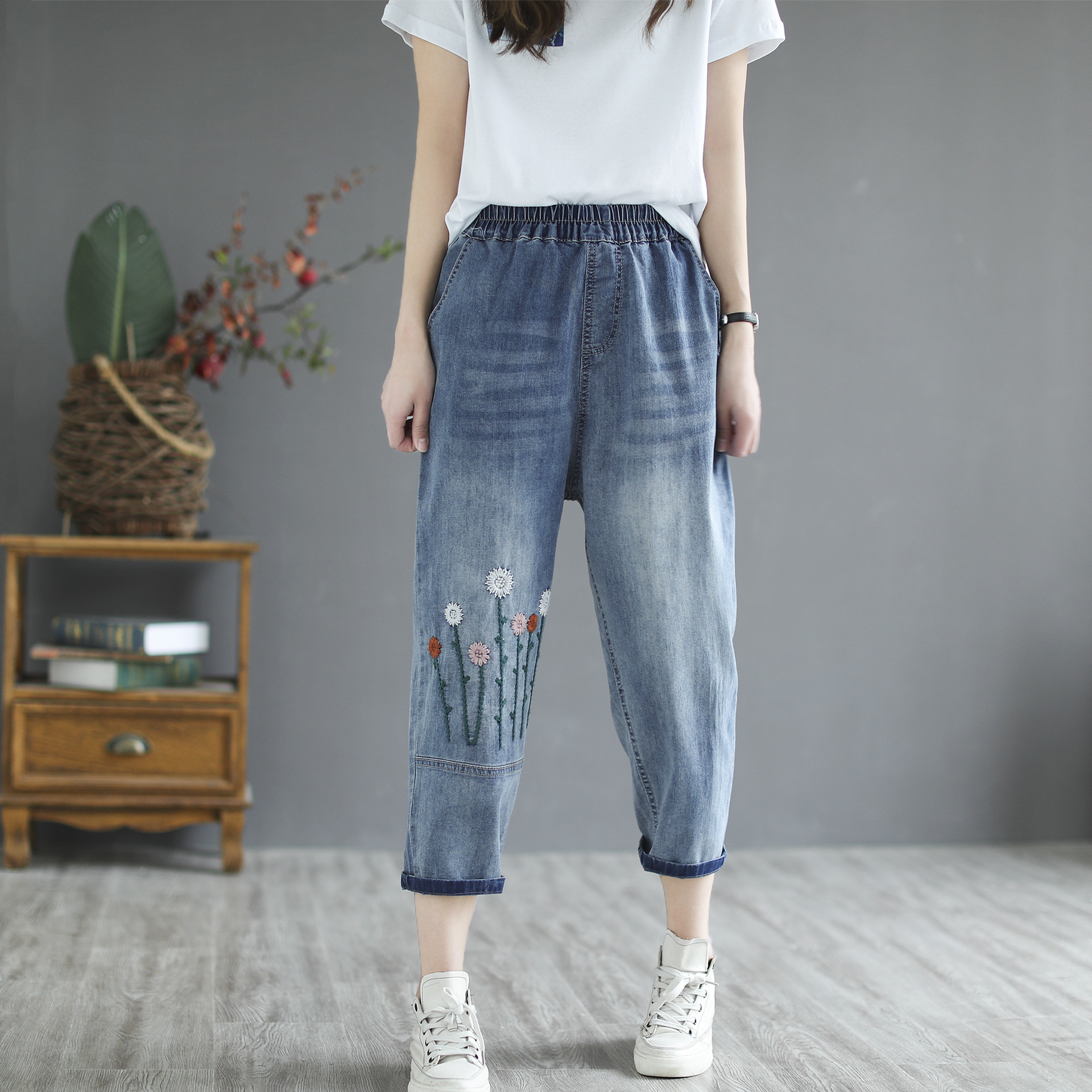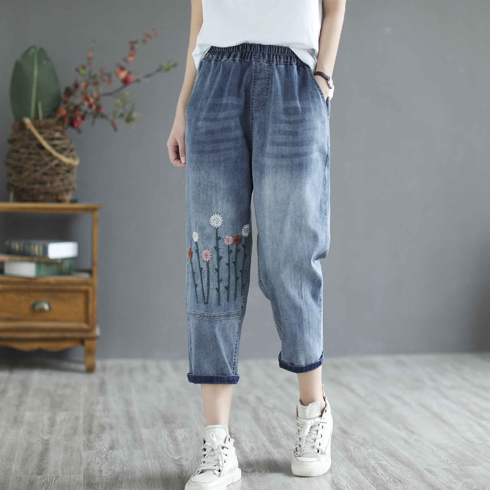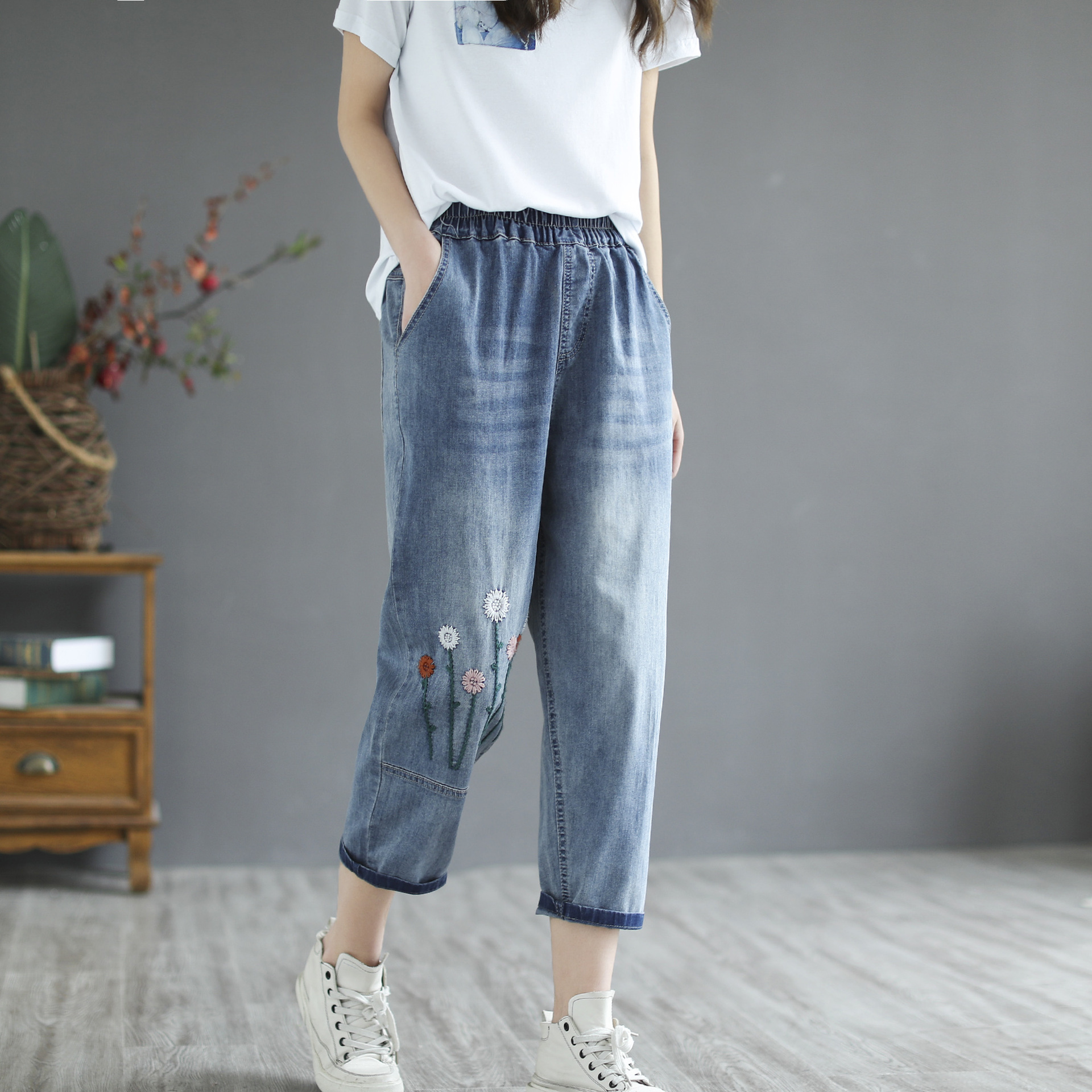 Women's Retro Literary Embroidery Jeans