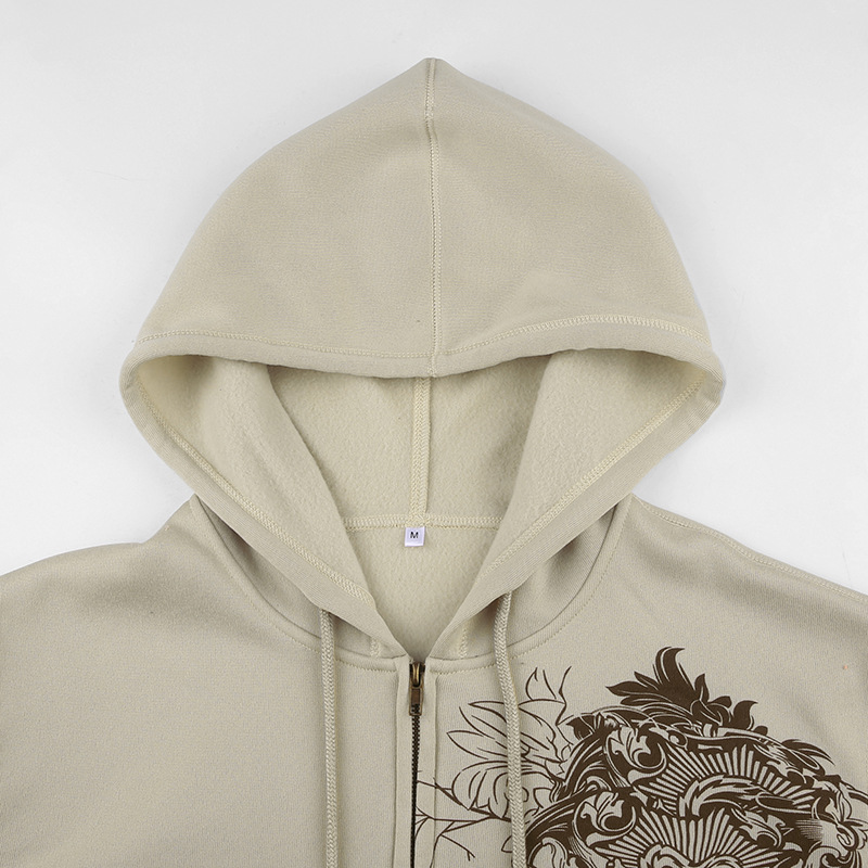 Women's Retro Print Loose Hooded Cardigan Sweater Coat