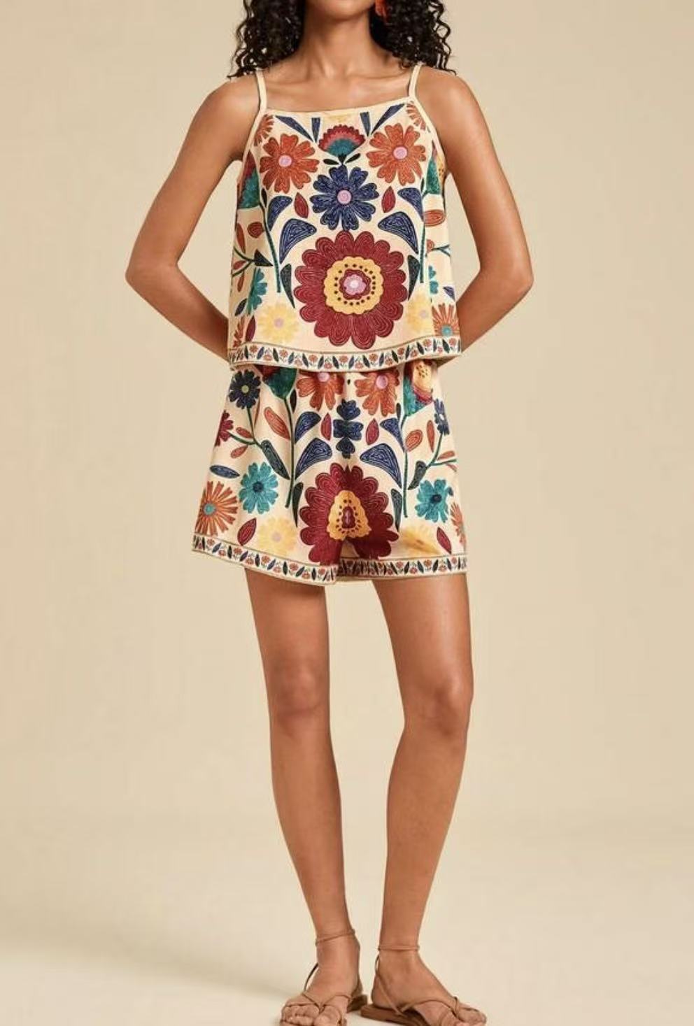 Colors: Dark brown, green, watermelon red, floral, black stripes, blue, black