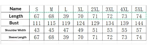 Sizes: S, M, L, XL, 2XL, 3XL, 4XL, 5XL