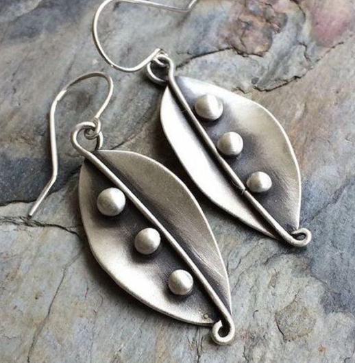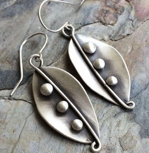 Womens Retro Silver Leaf Forest-Style Minimalist Earrings