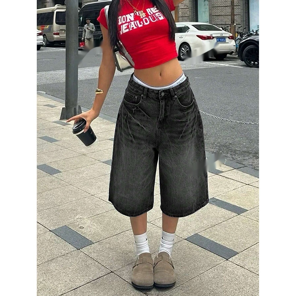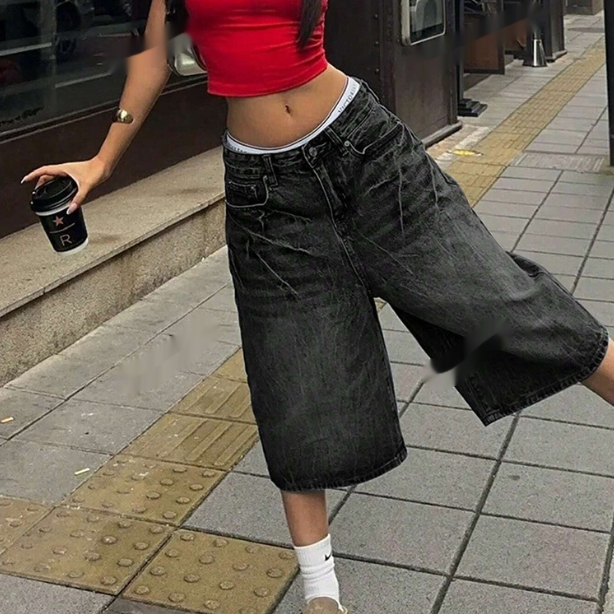 Womens Retro Washed Cropped Denim Jeans