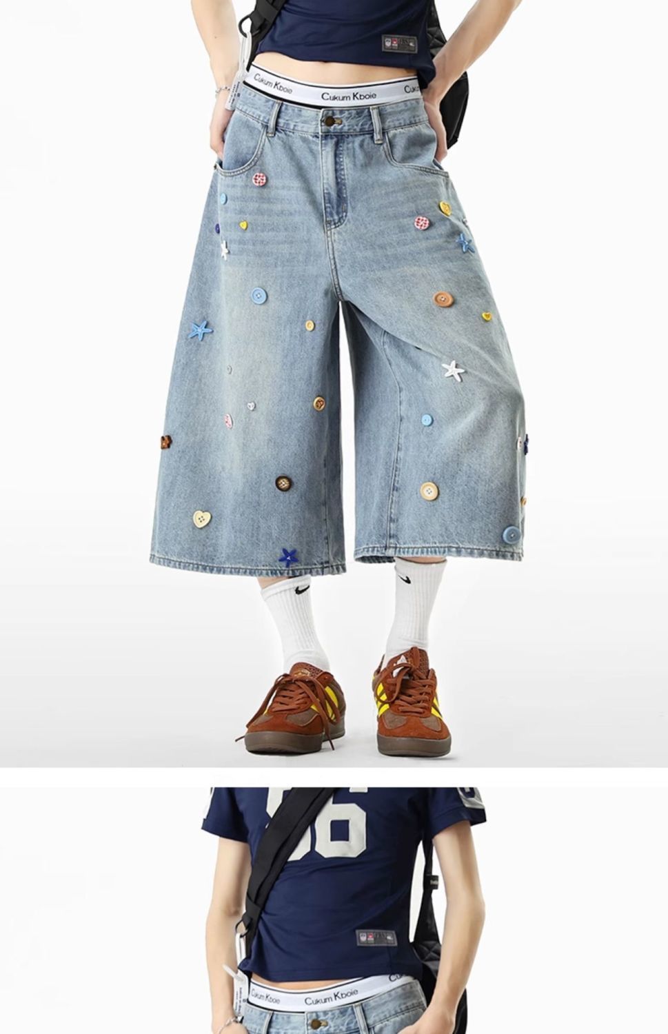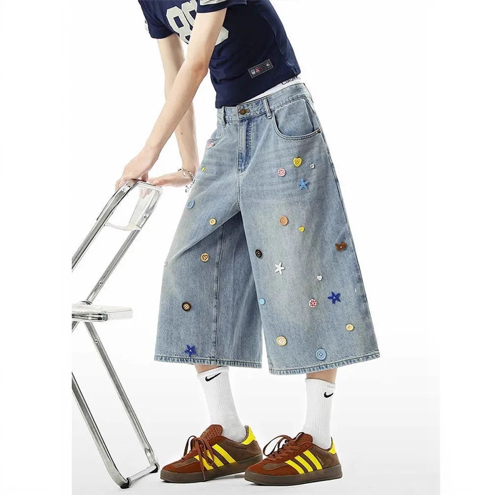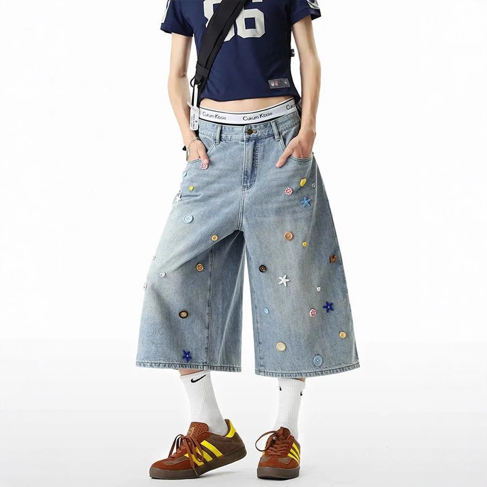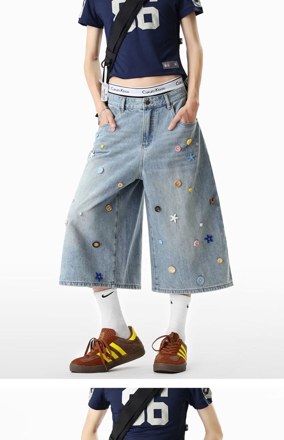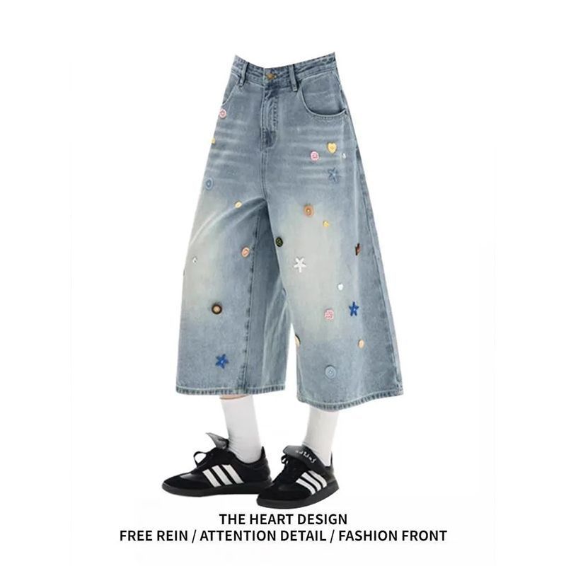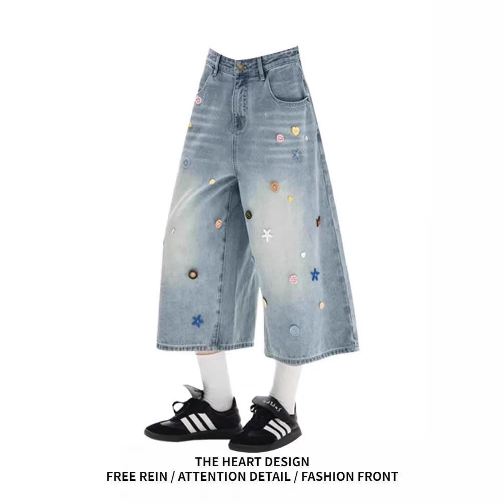 Womens Retro Washed Light Blue Cropped Denim Jeans In American Style