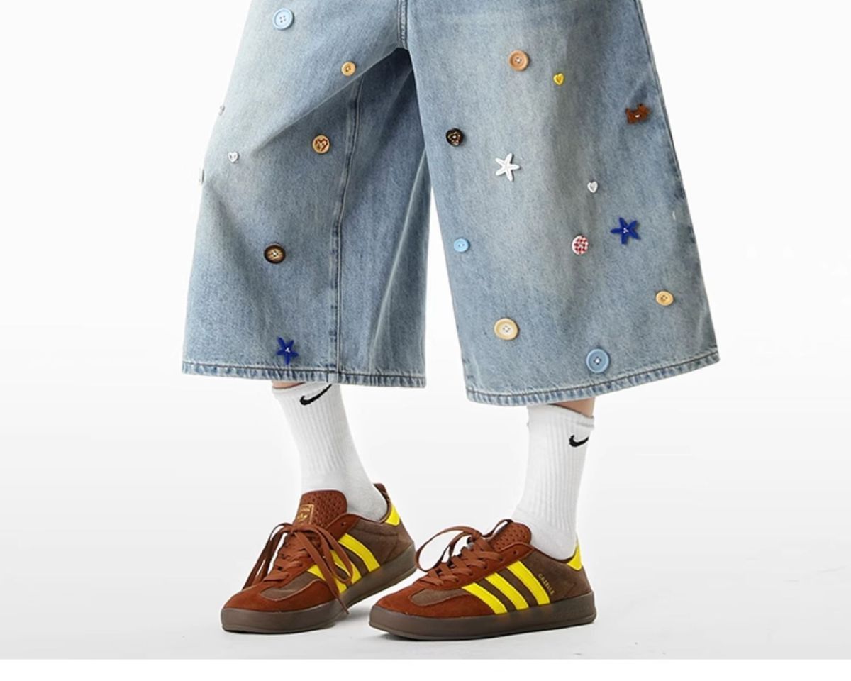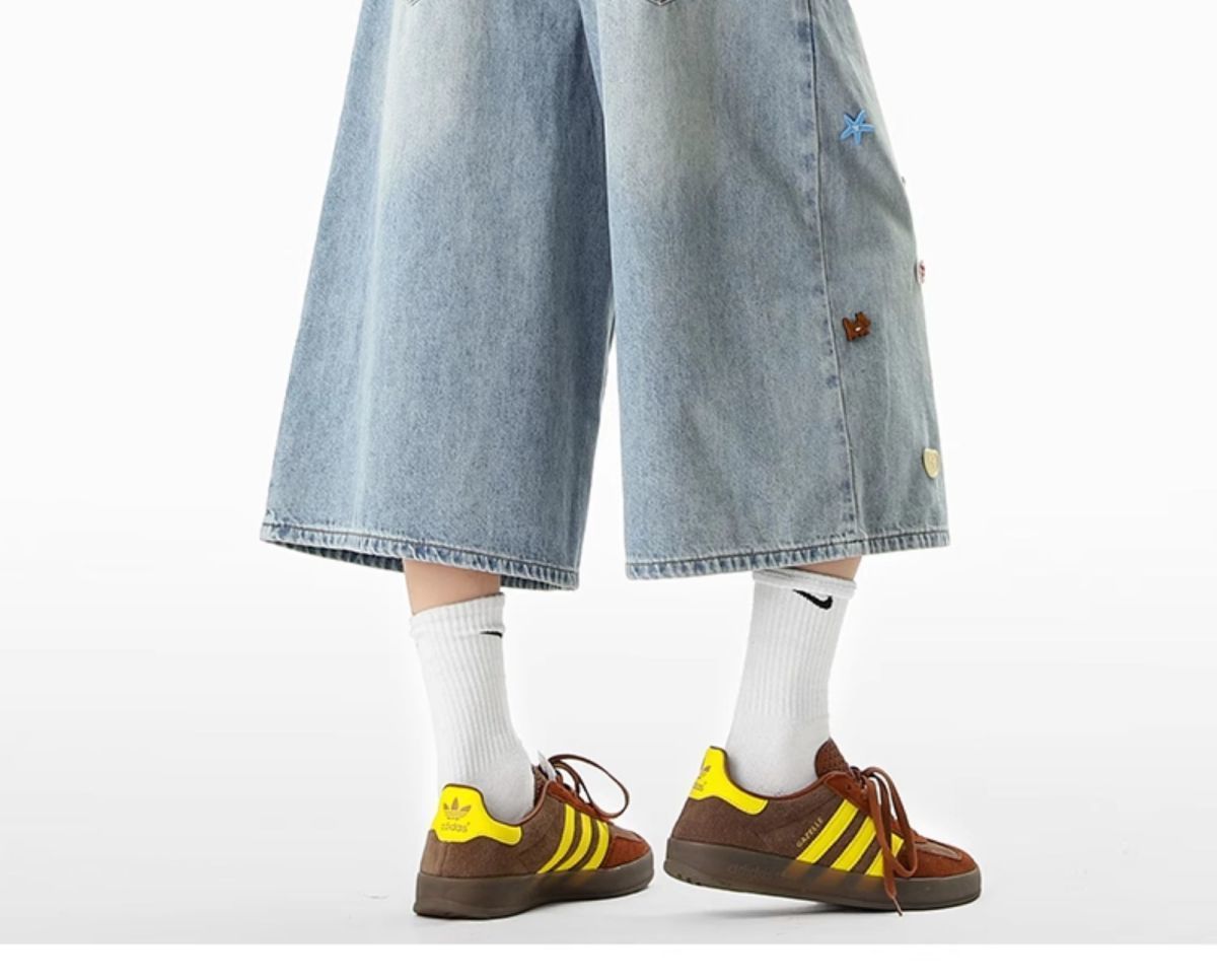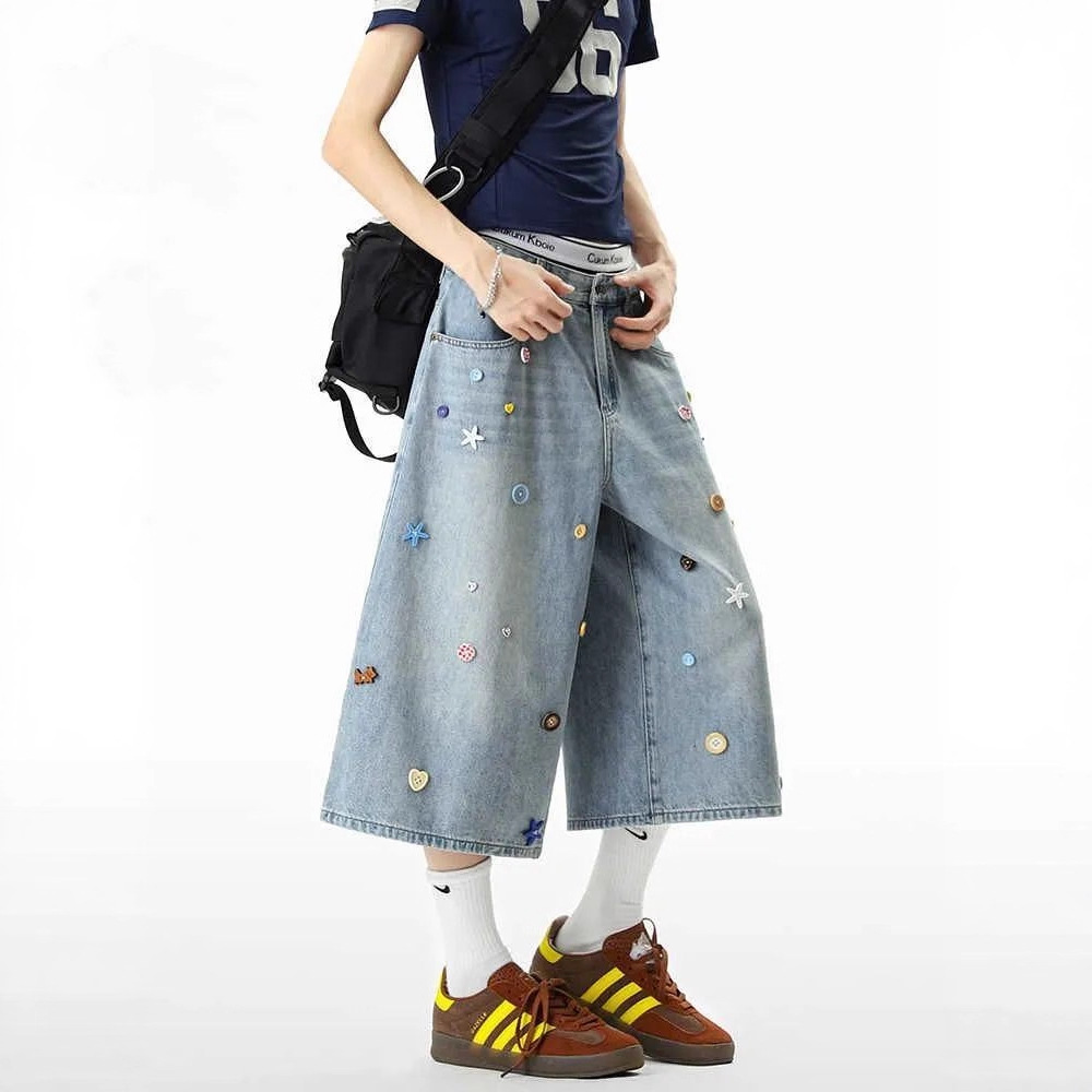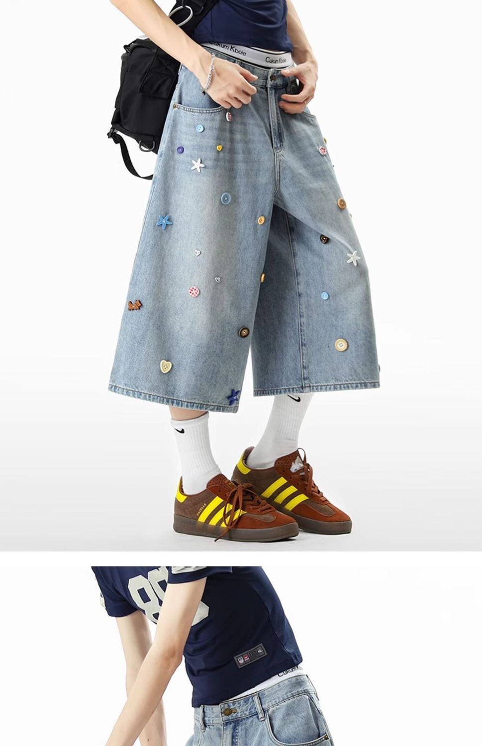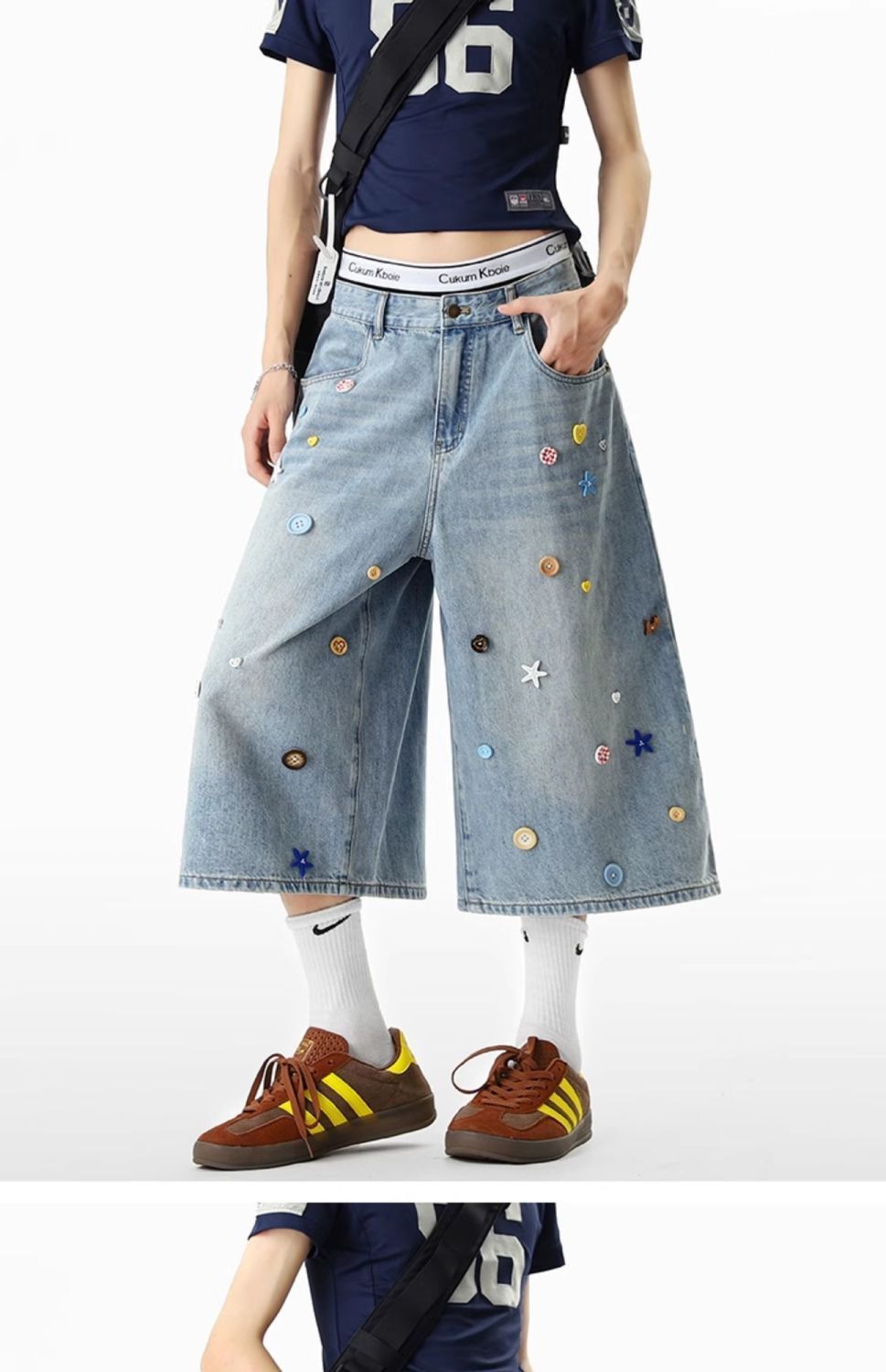 Womens Retro Washed Light Blue Cropped Denim Jeans In American Style