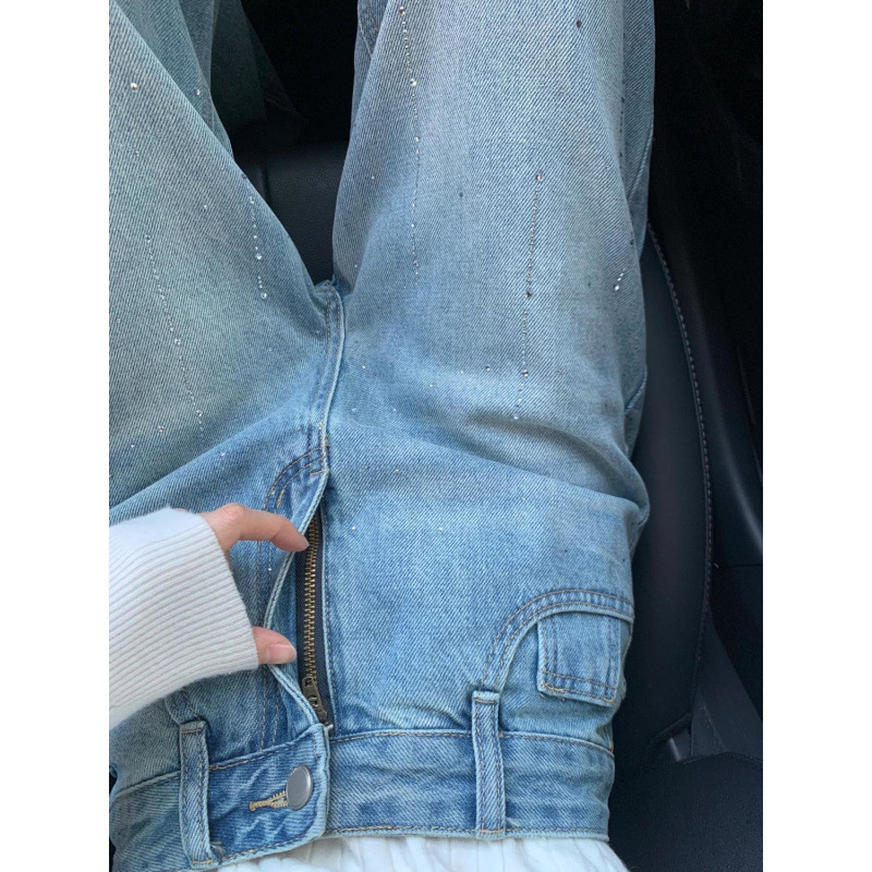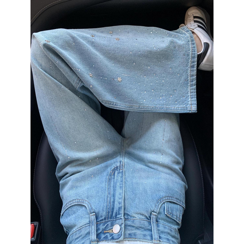 Women's Rhinestone High Waist Straight Jeans
