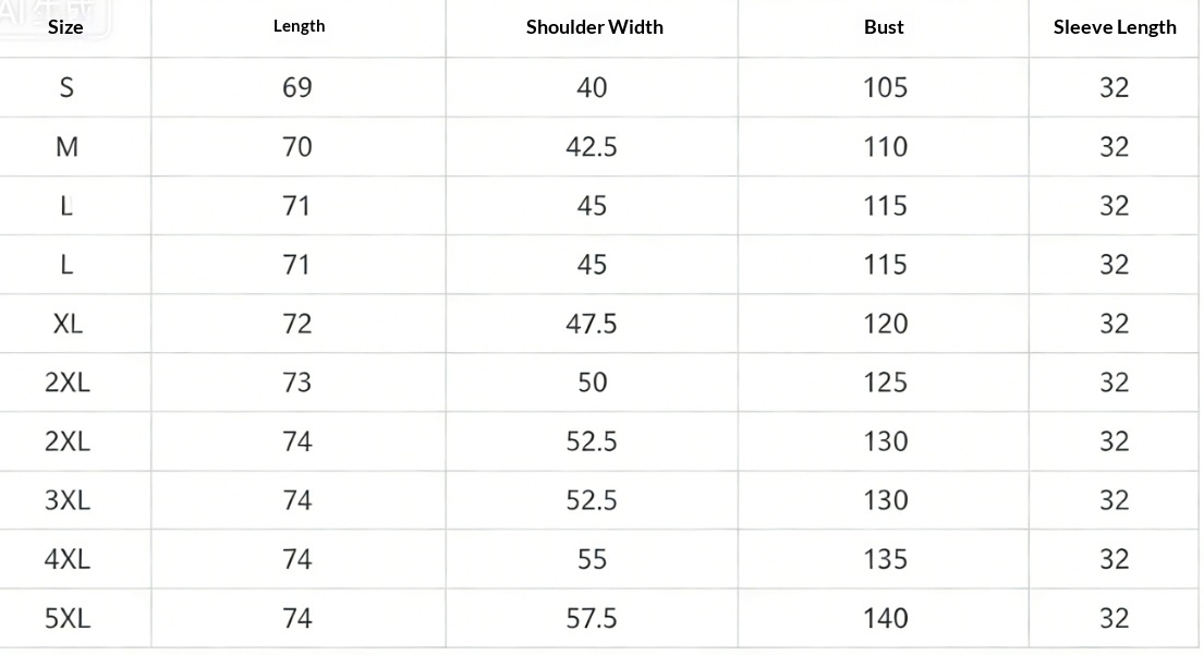 Sizes: S, M, L, XL, 2XL, 3XL, 4XL, 5XL