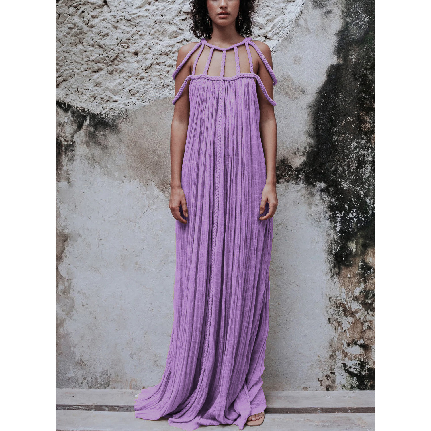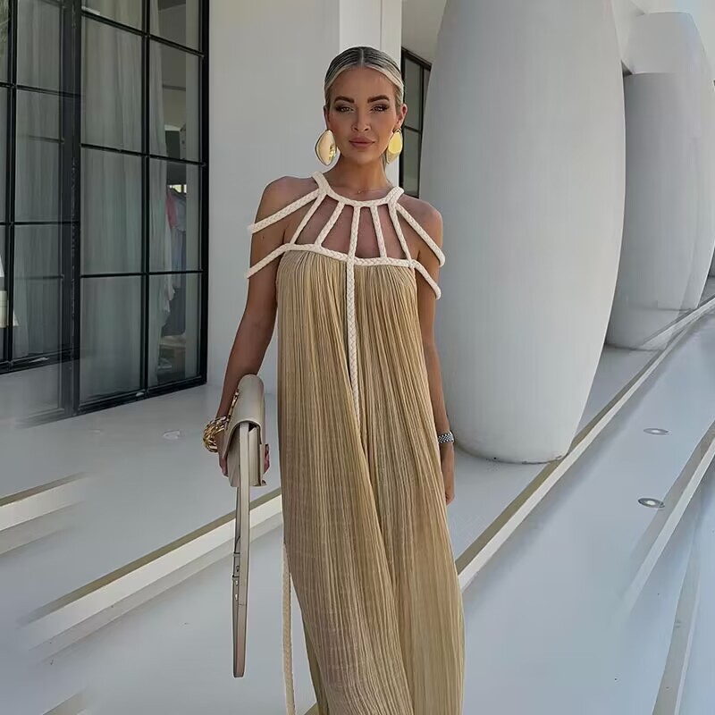 Women's Rope Off-shoulder Halter Loose Vacation Beach Dress