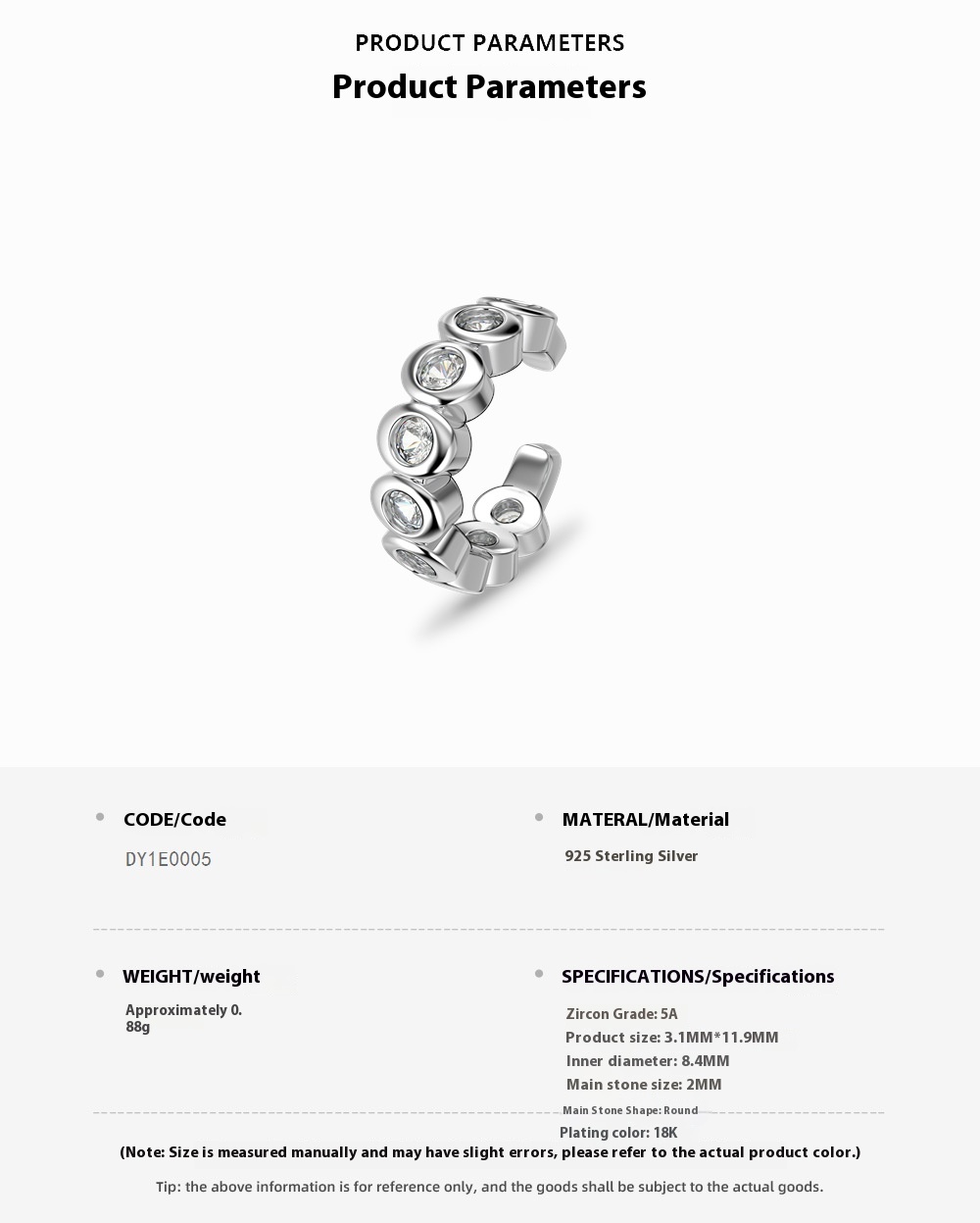 Color: Platinum DY1E0005-S-W-WH, gold DY1E0005-S-G-WH