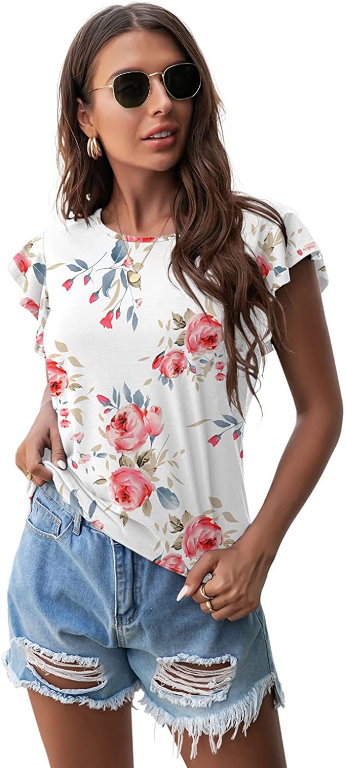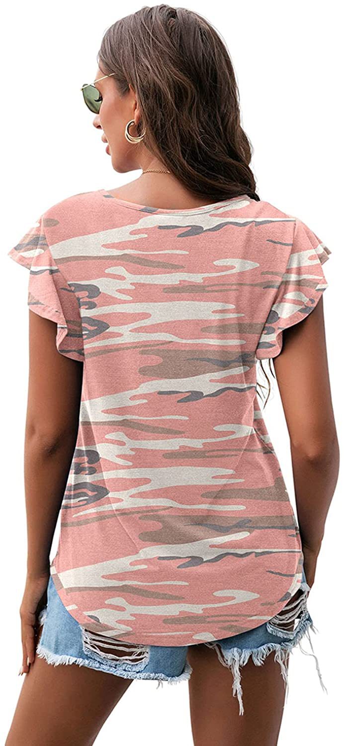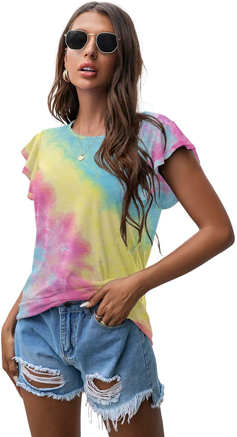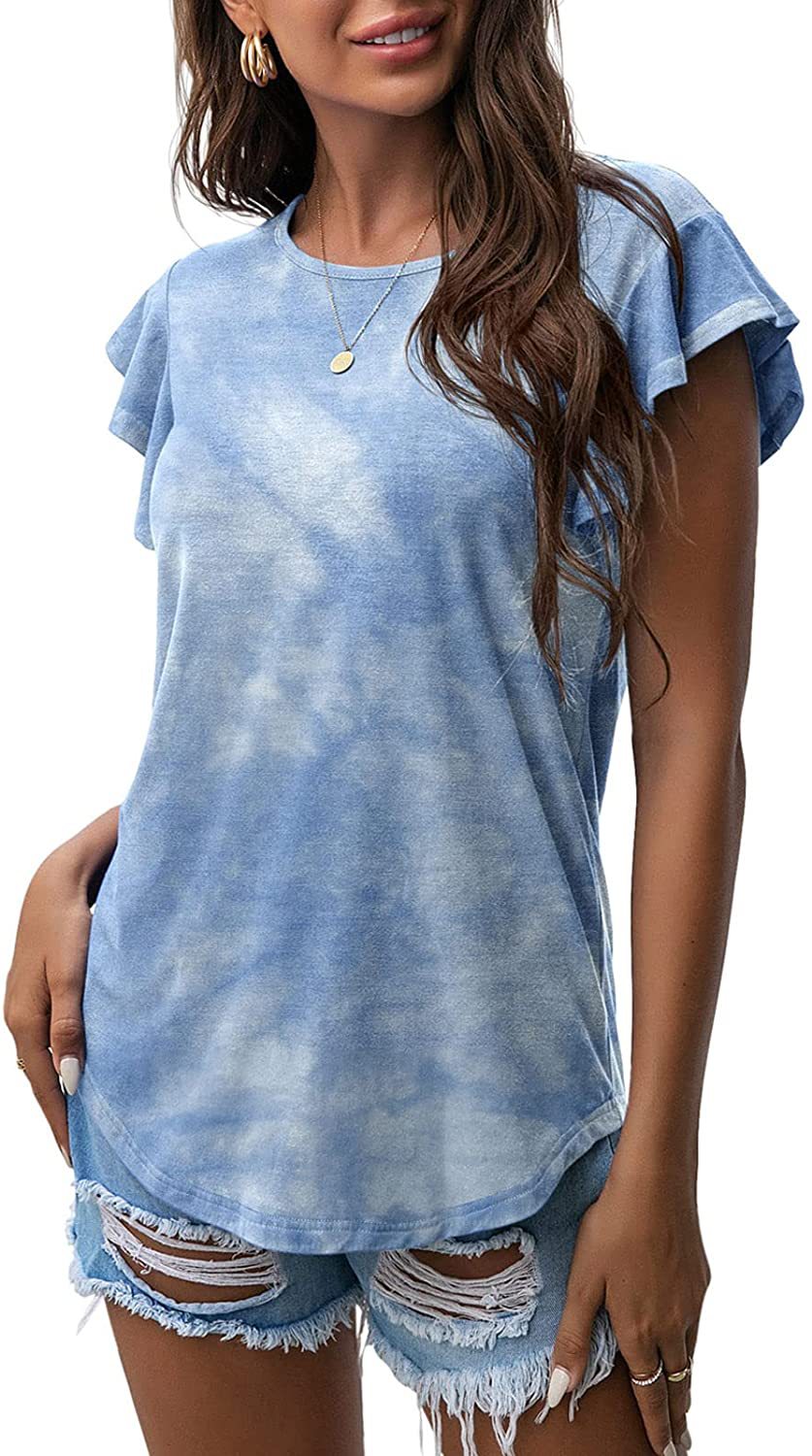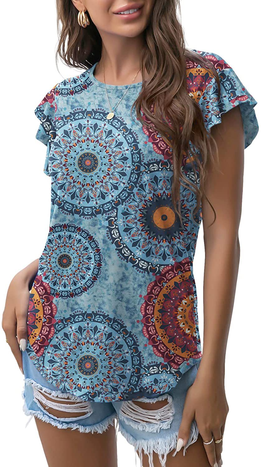 Women's Round Neck Printed Ruffled Short Sleeve T-shirt