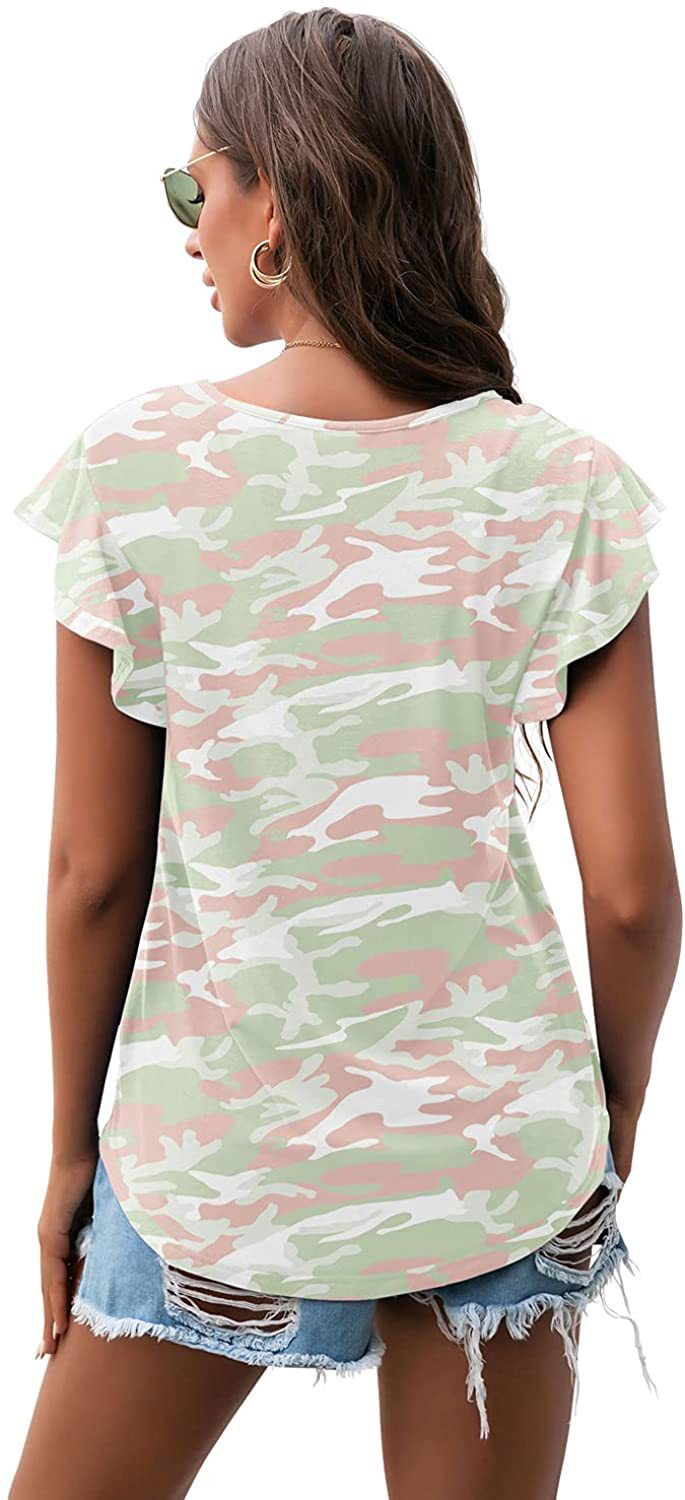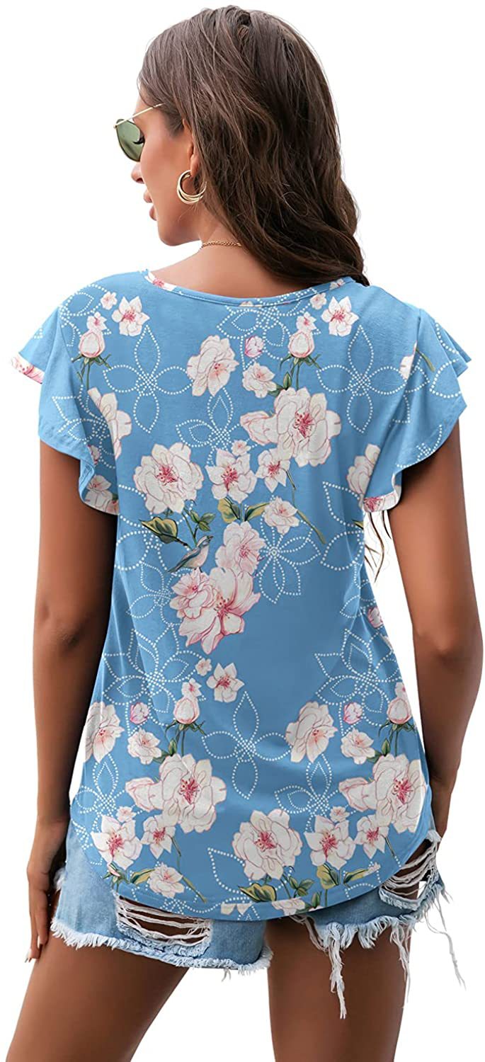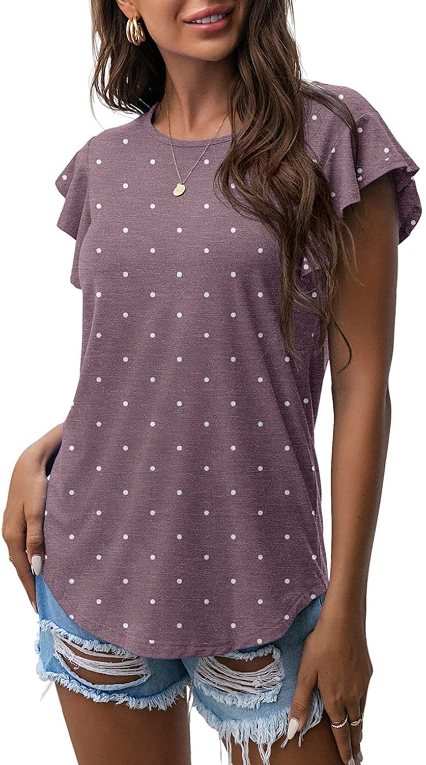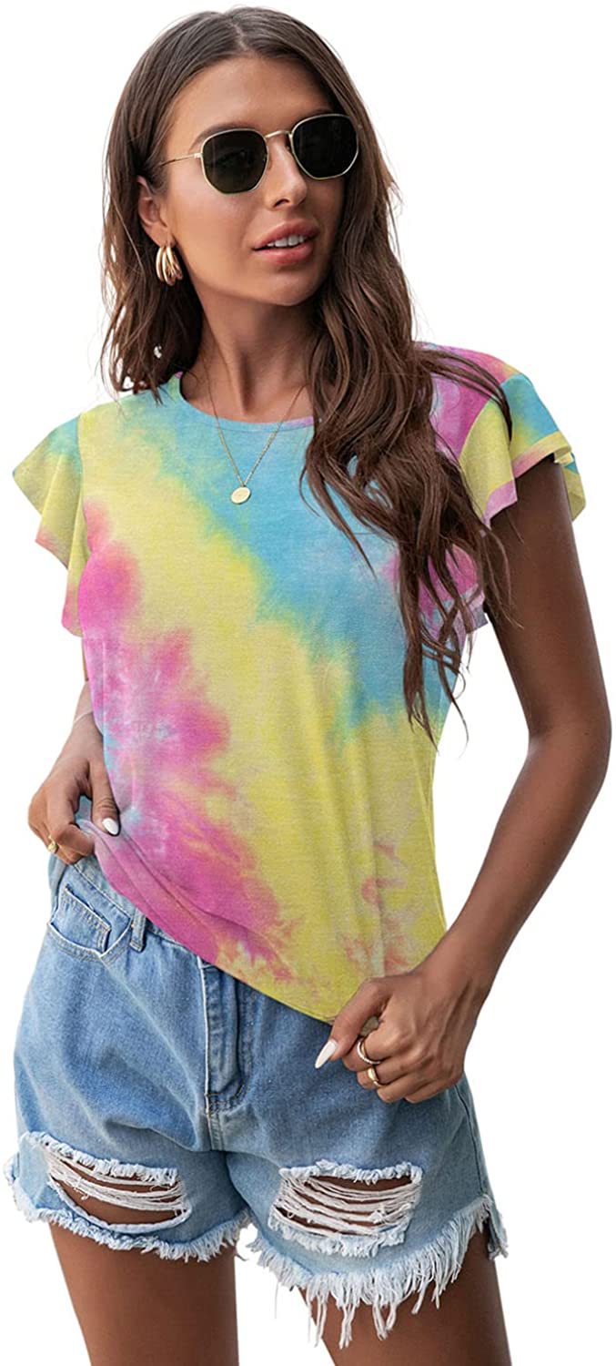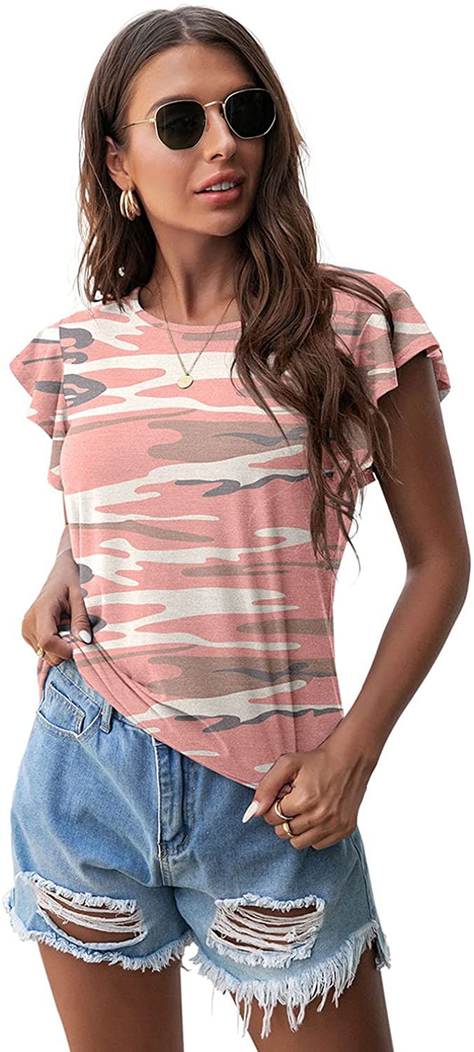 Women's Round Neck Printed Ruffled Short Sleeve T-shirt