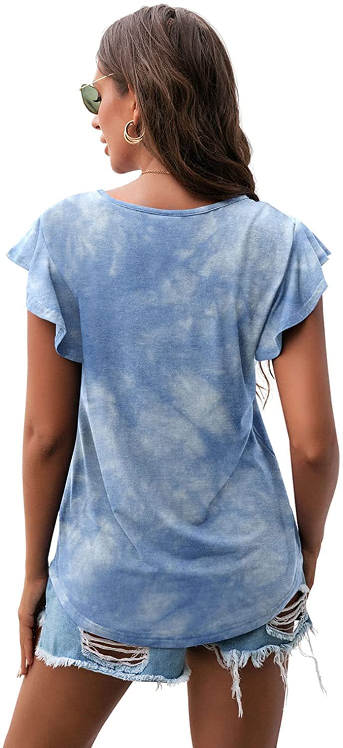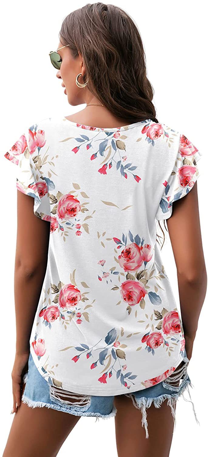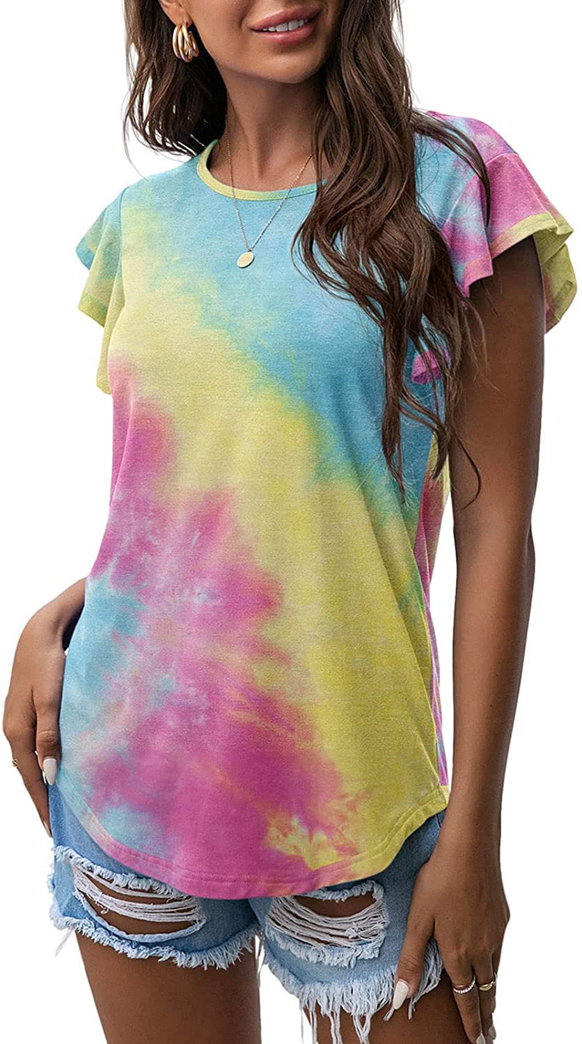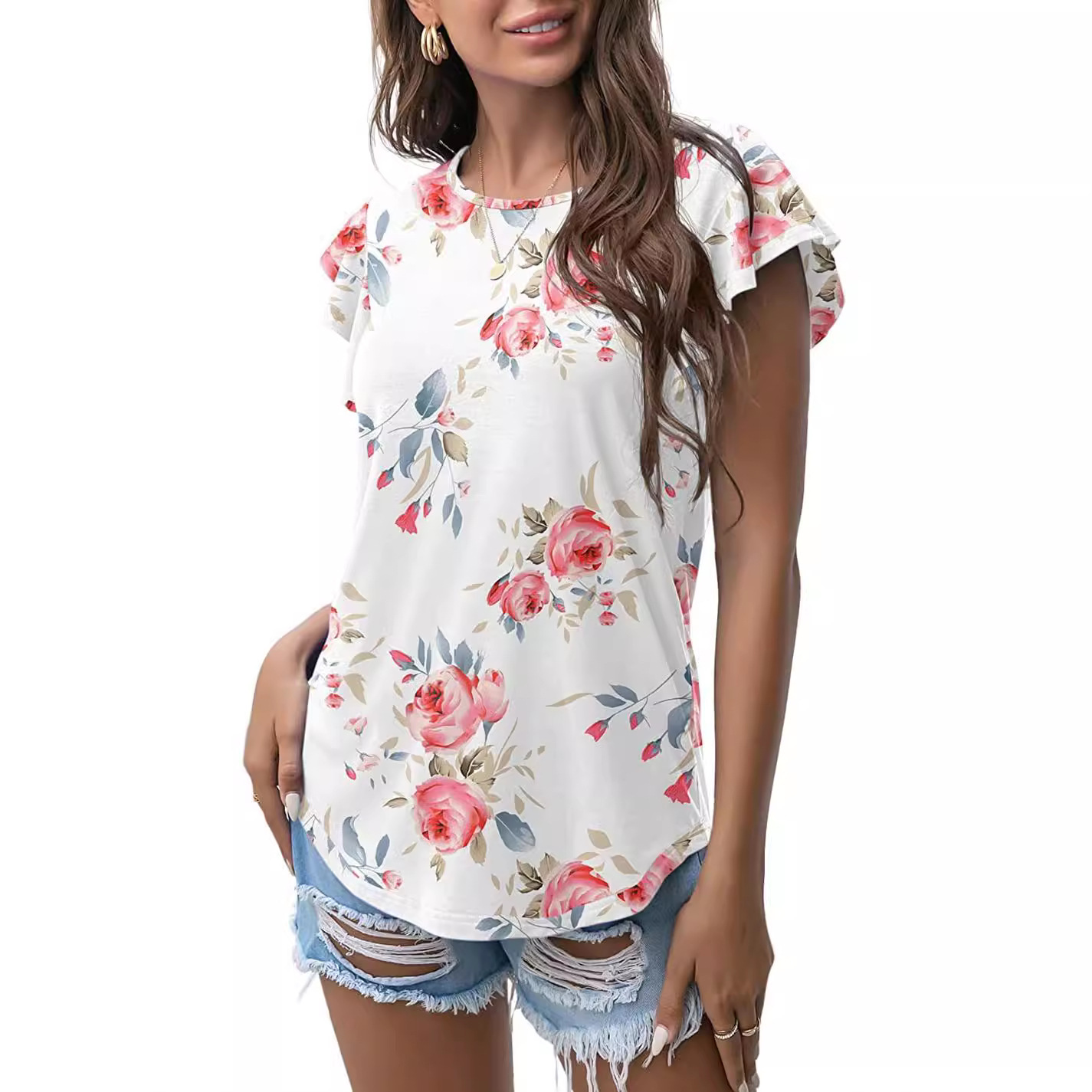 Women's Round Neck Printed Ruffled Short Sleeve T-shirt