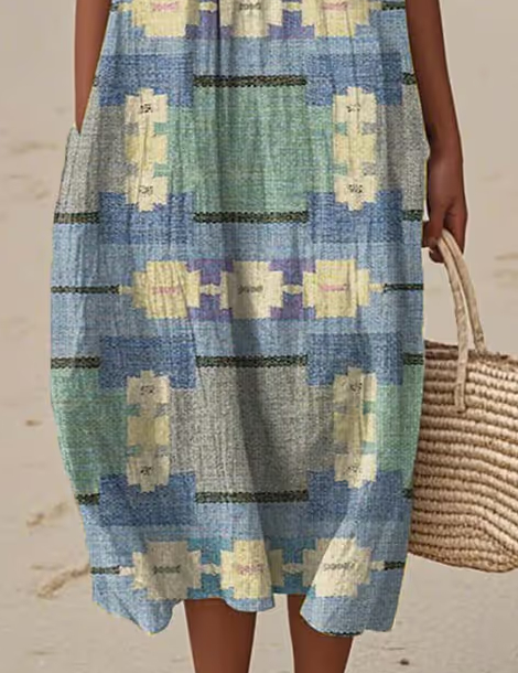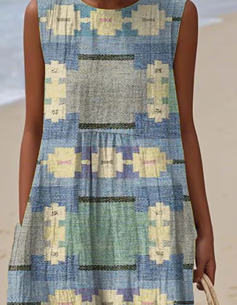 Women'S Round Neck Sleeveless Color-Block Printed Dress