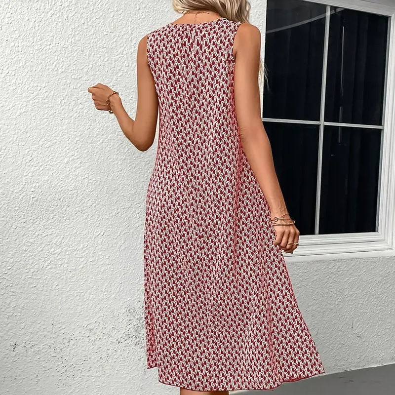 Women's Round Neck Sleeveless Printed Mid-length Dress