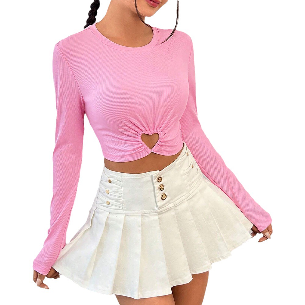 Women's Round Neck Slim-fit Short Heart And Circle Long Sleeve T-shirt