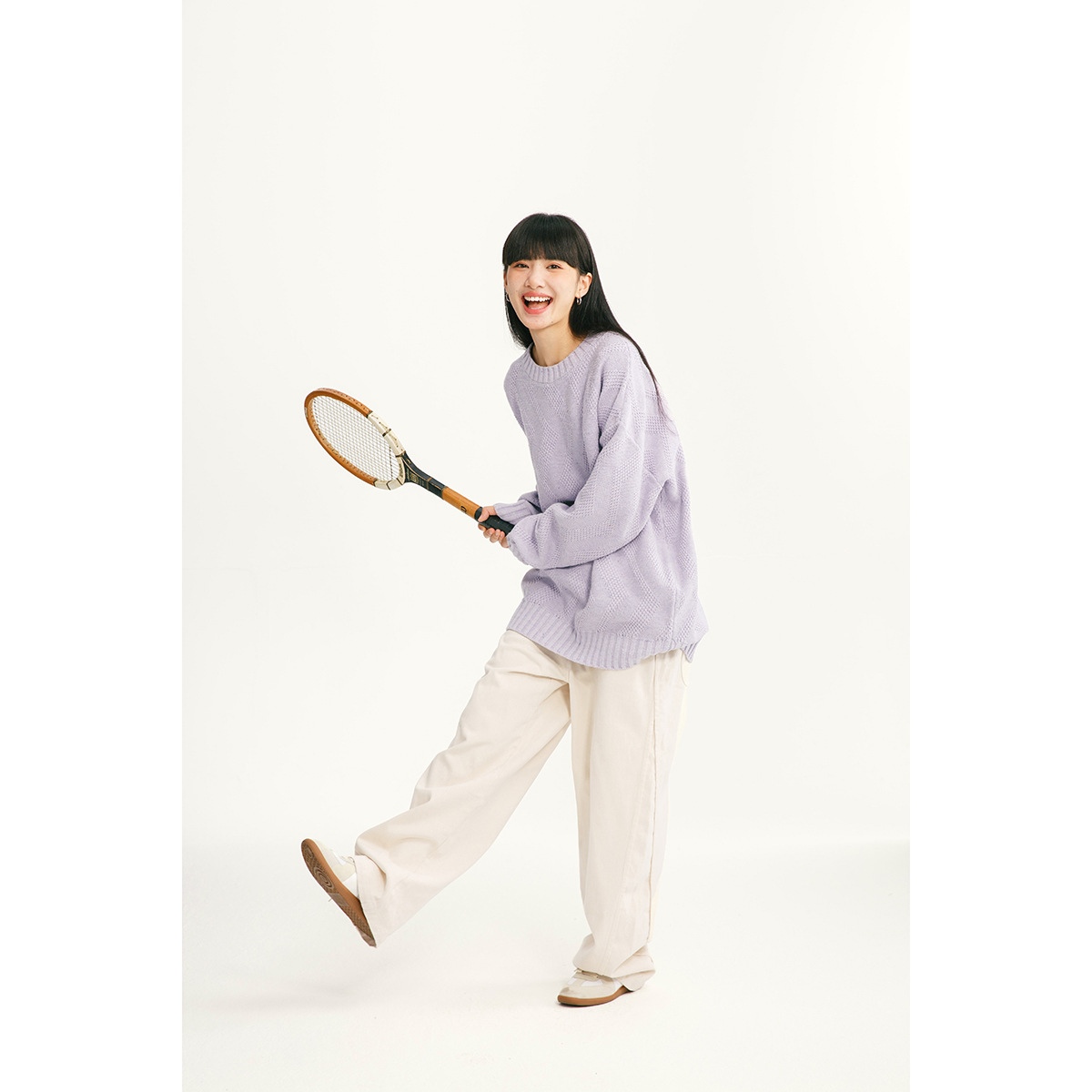 Color: heather gray, creamy-white, purple