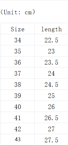 Size: 35, 36, 37, 38, 39, 40, 41, 42, 43