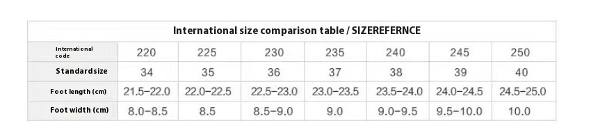 Size: 36, 37, 38, 39, 40, 41, 42, 43