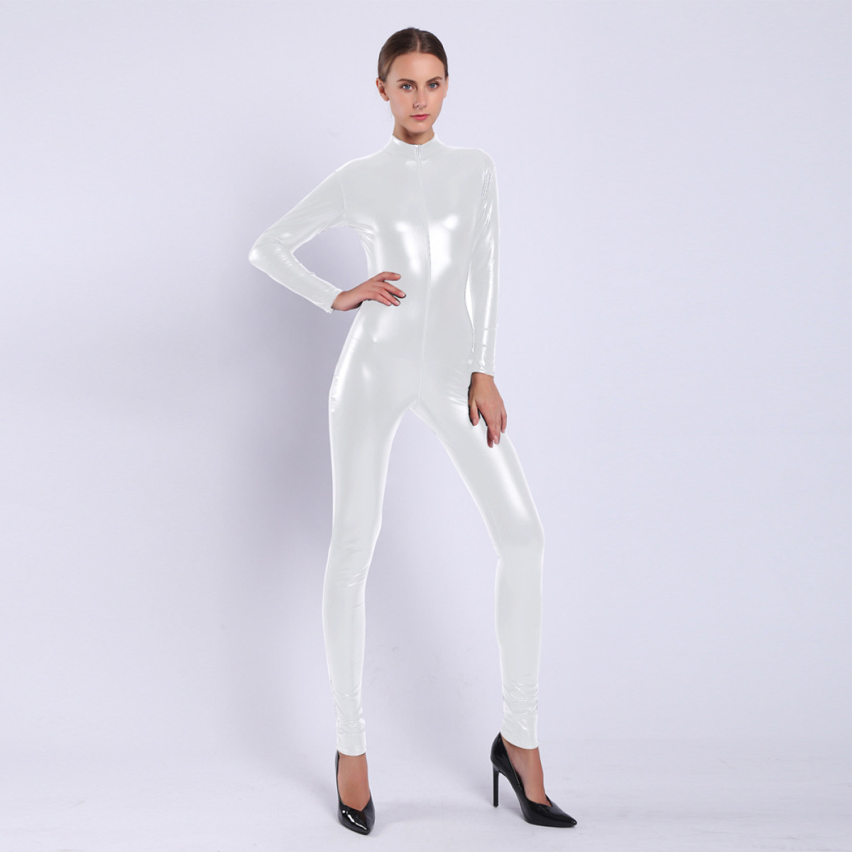 Women's Rubberized Faux Leather Shiny Bodysuit