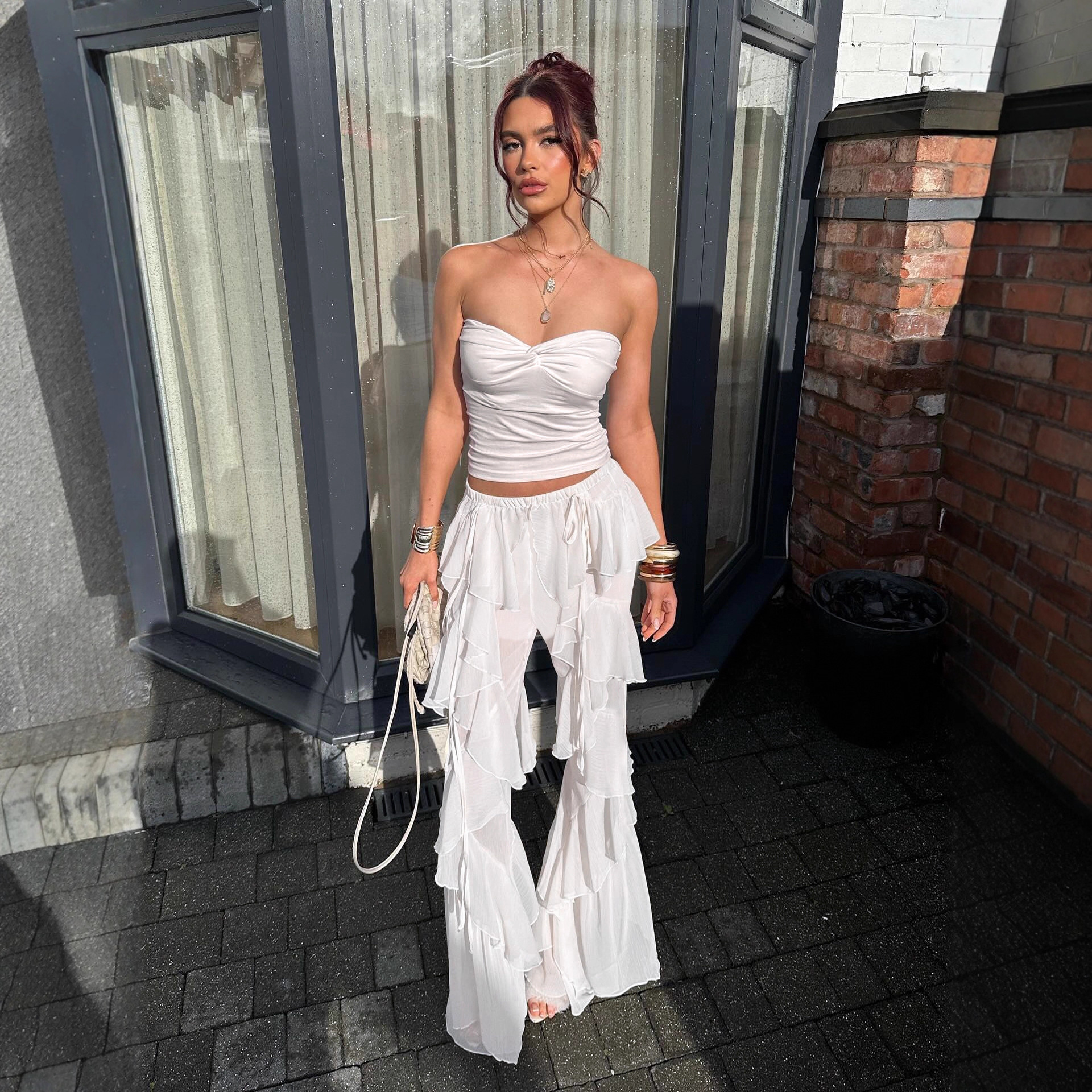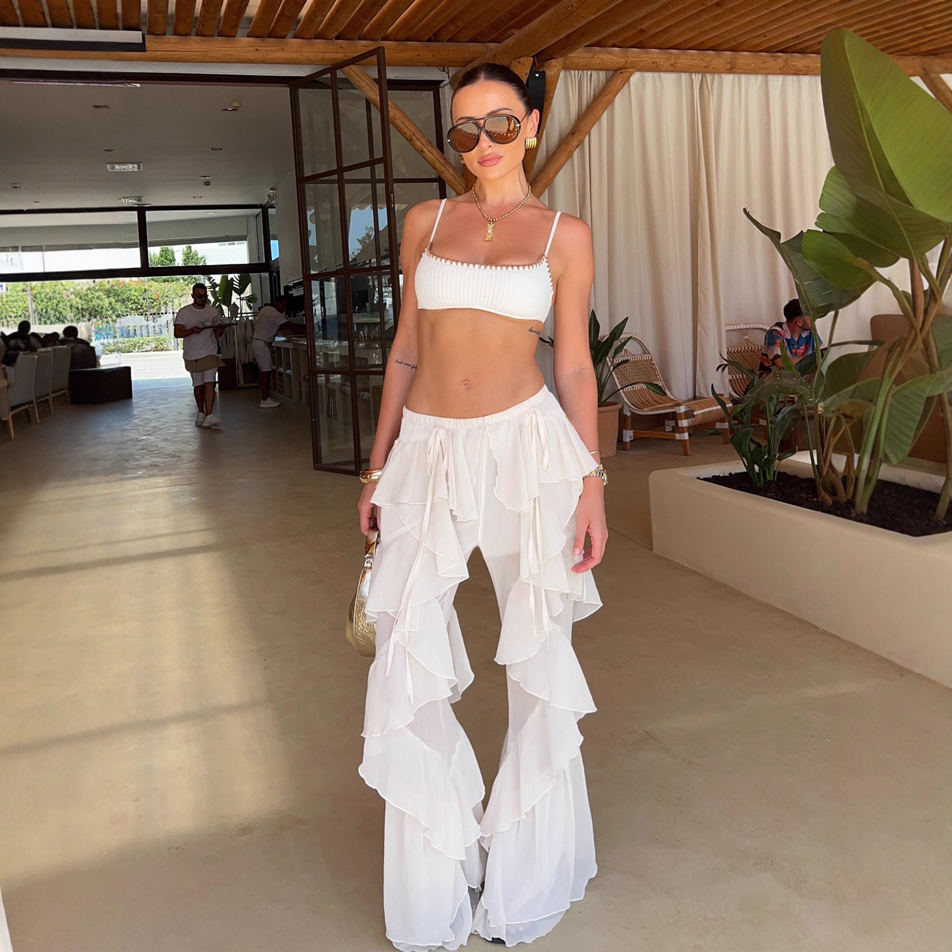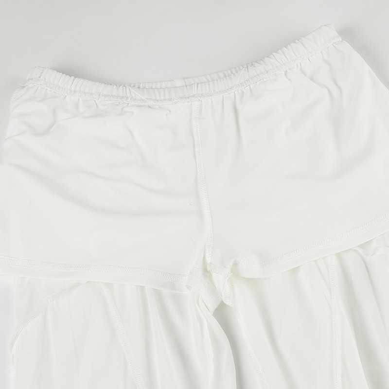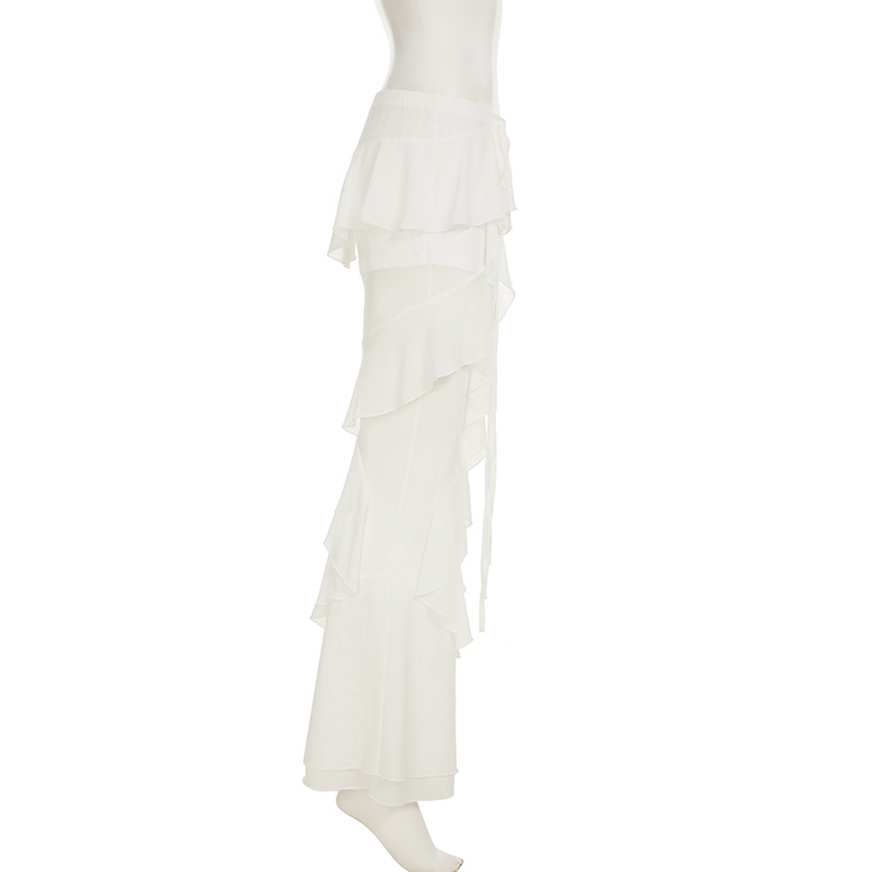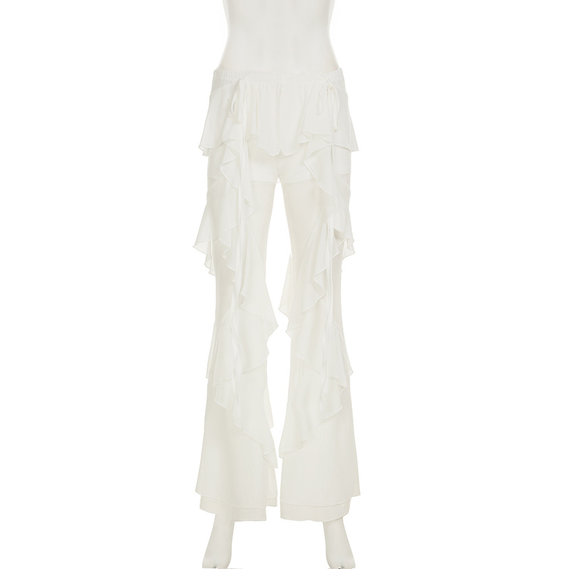 Womens Ruffle-Trimmed, Layered Mesh Pants