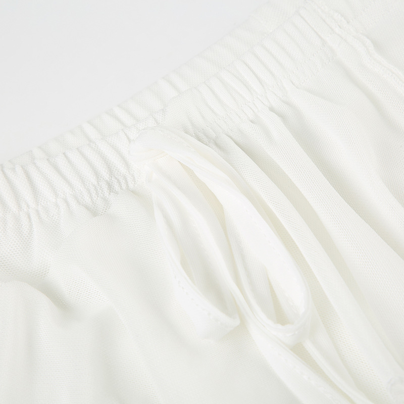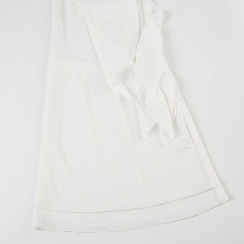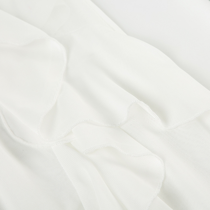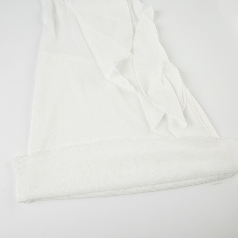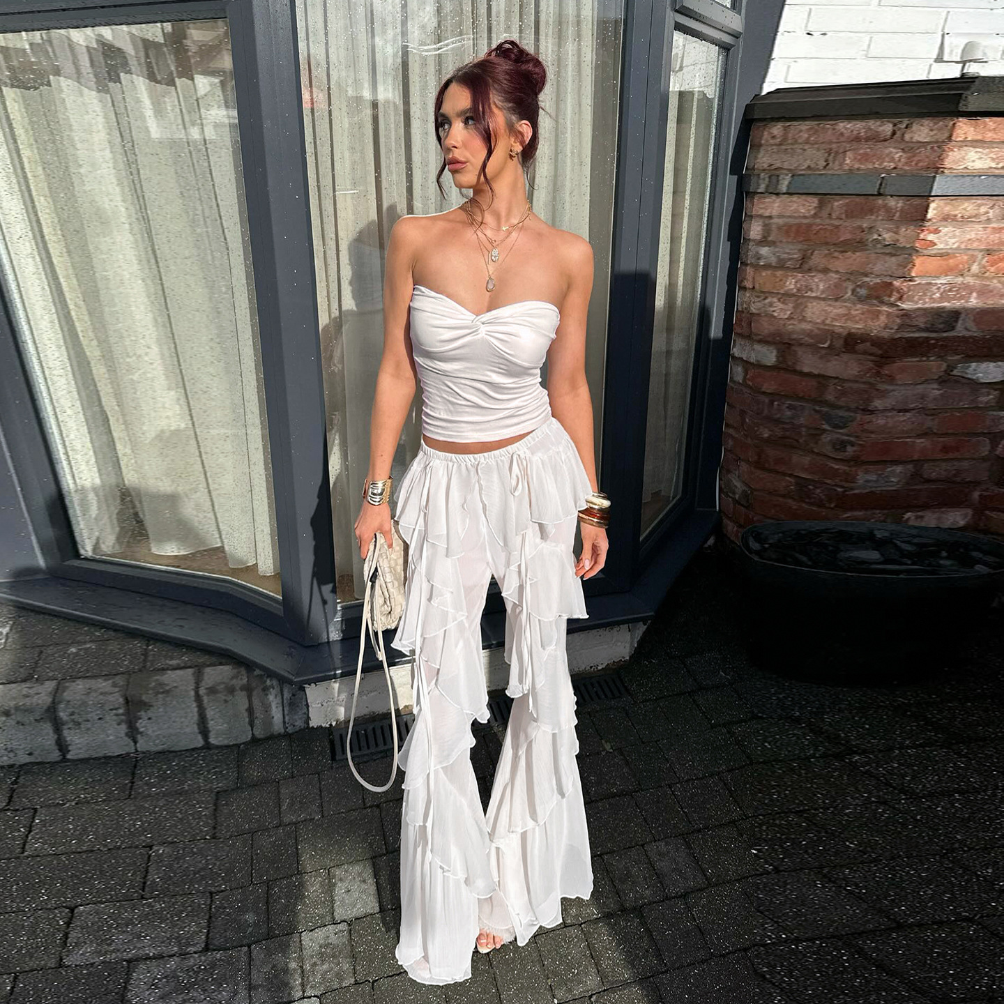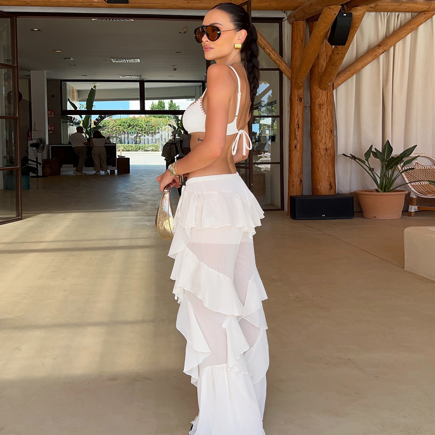 Womens Ruffle-Trimmed, Layered Mesh Pants