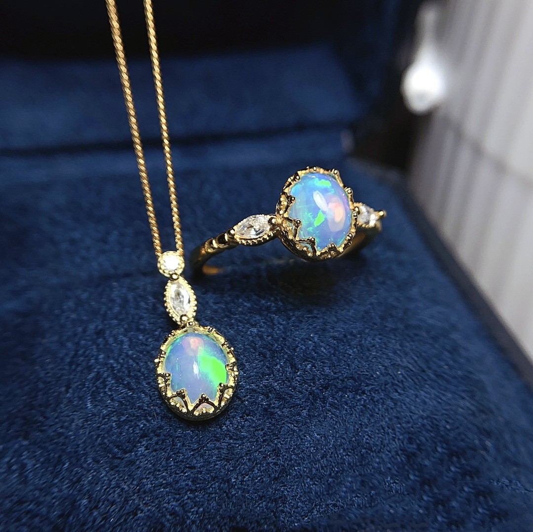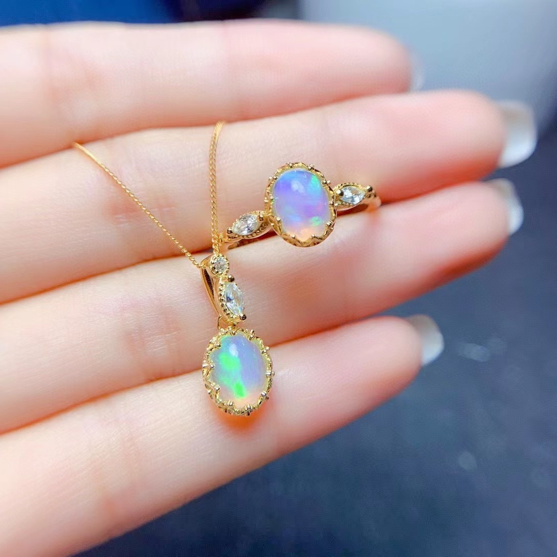 Product information:Type: SetMaterial: OpalTreatment process: polishingStyle: Pendant, Ring