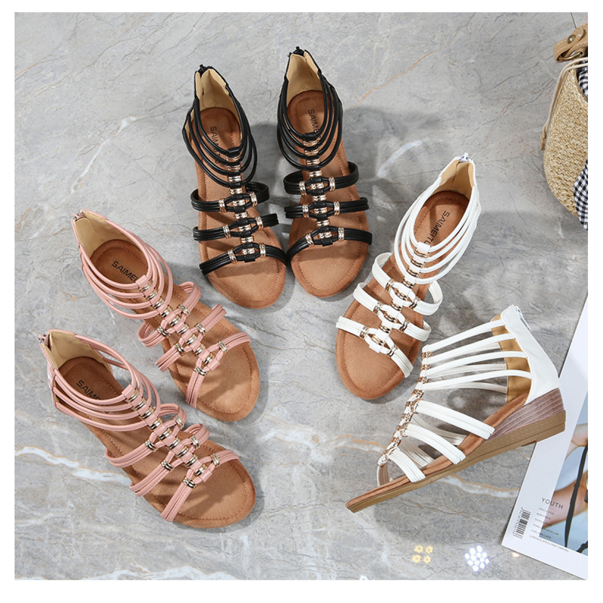 Popular elements: metal, wedge heel