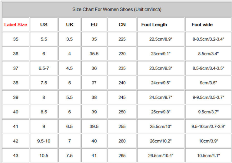 Size: 36, 37, 38, 39, 40, 41, 42, 43