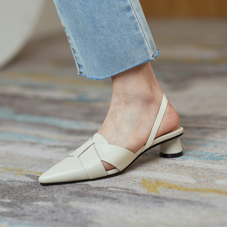 Sole material: beef tendonCortical features: sheepskinStyle: Korean Toe shape: pointedHeel height: middle heel (3-5CM)Heel shape: thick heel