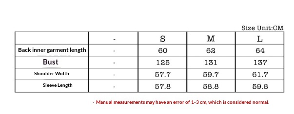 1. Asian sizes are 1 to 2 sizes smaller than European and American people. Choose the larger size if your size between two sizes. Please allow 2-3cm differences due to manual measurement. 2. Please check the size chart carefully before you buy the item, if you don't know how to choose size, please contact our customer service. 3.As you know, the different computers display colors differently, the color of the actual item may vary slightly from the following images.