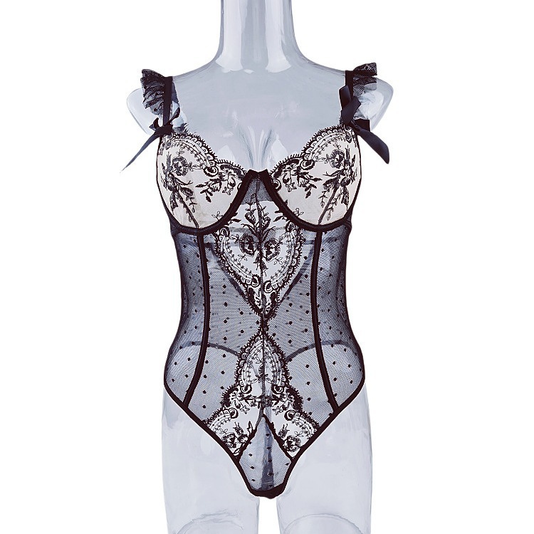 Women's See-through Underwear Lace Embroidery Stitching Suit