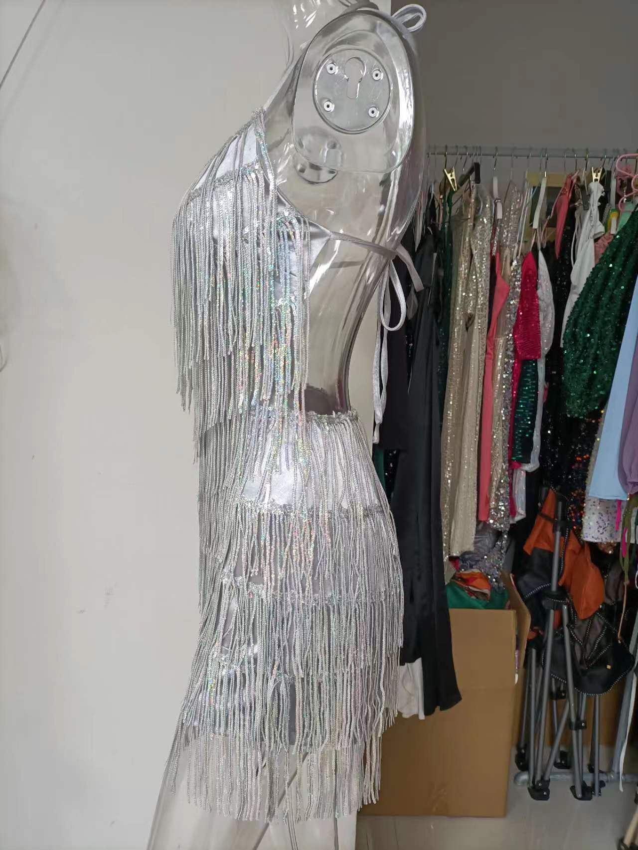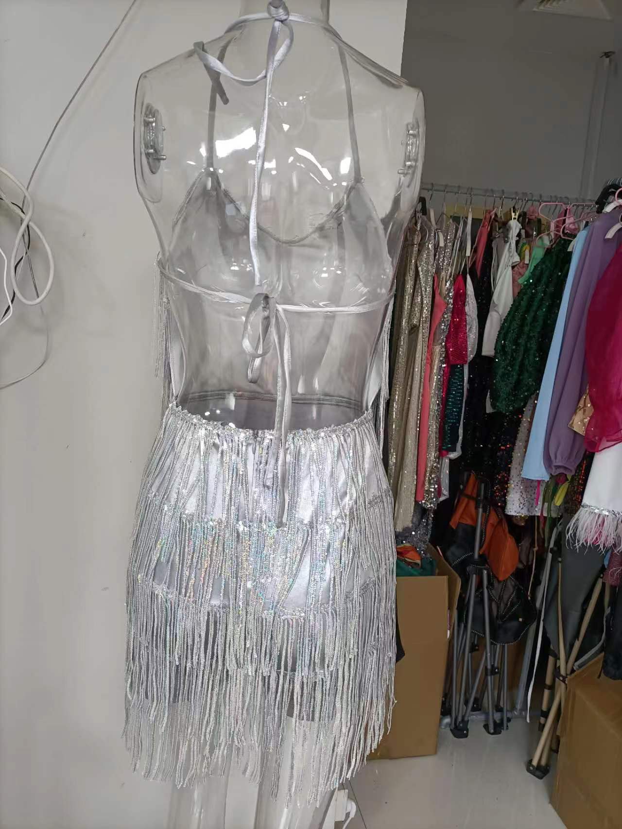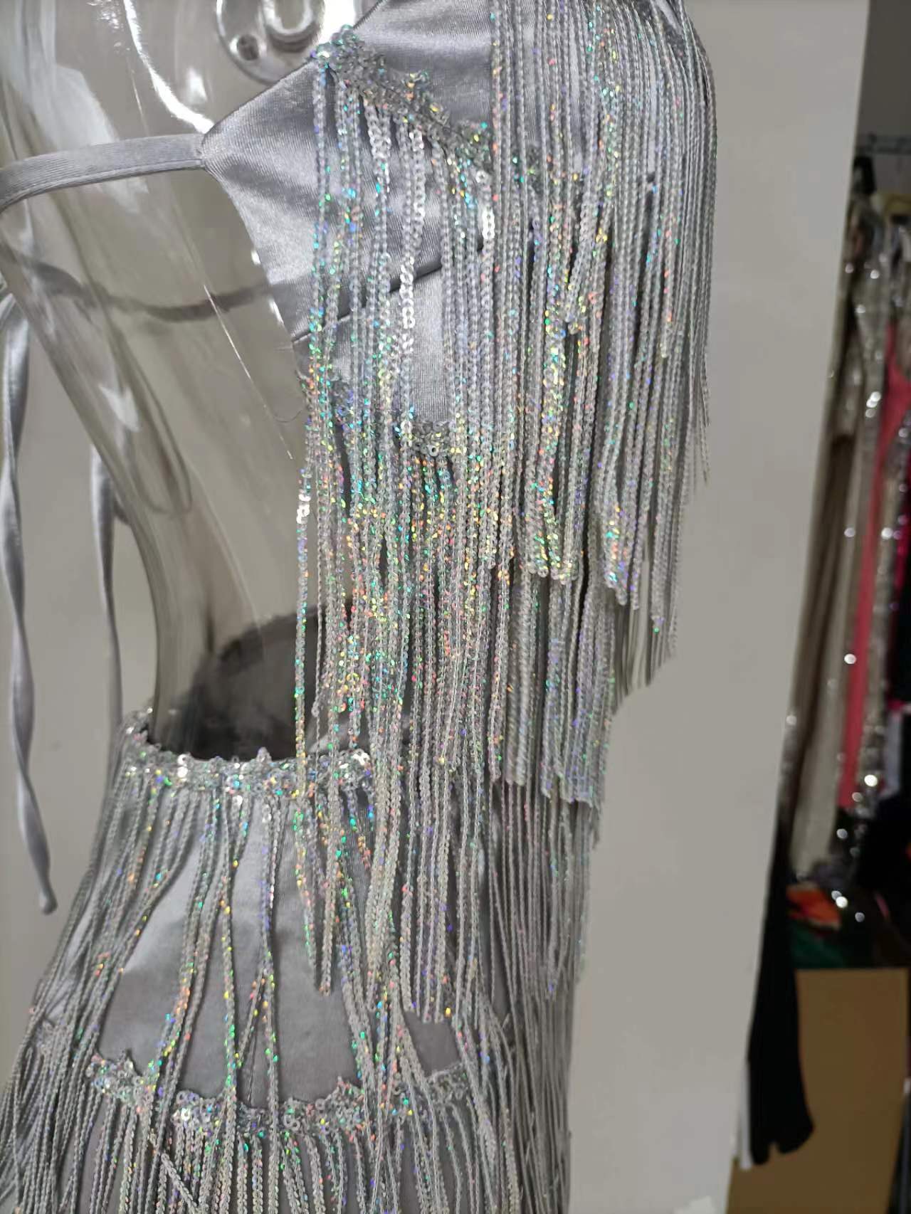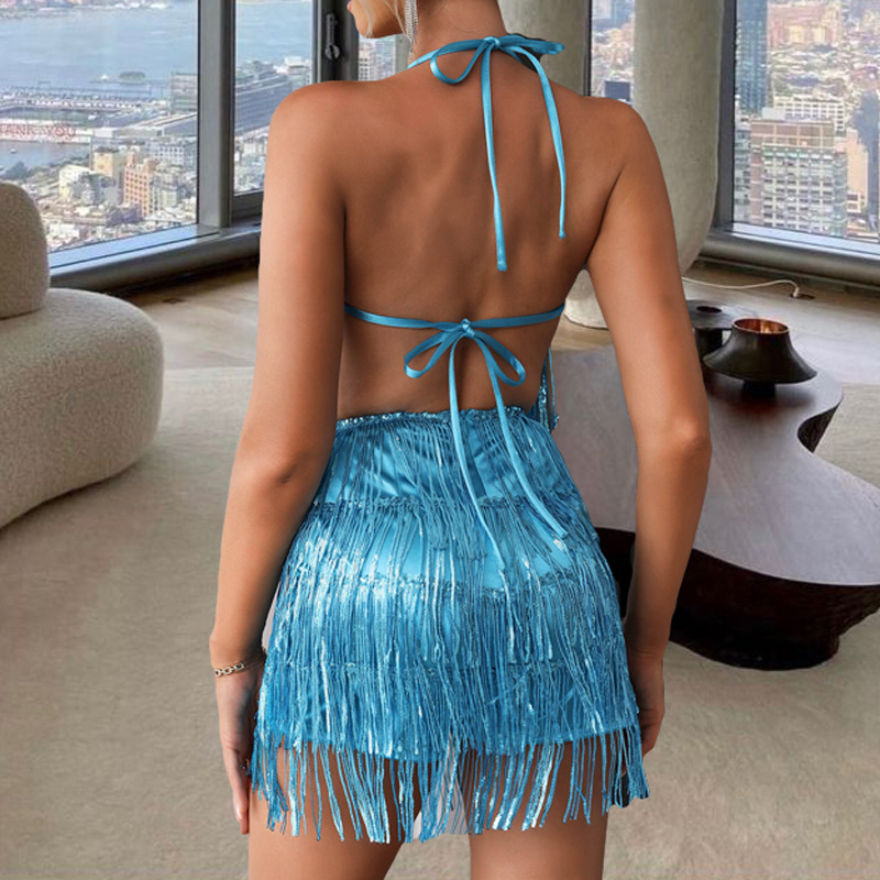 Womens Sequin Tassel Strap Dress