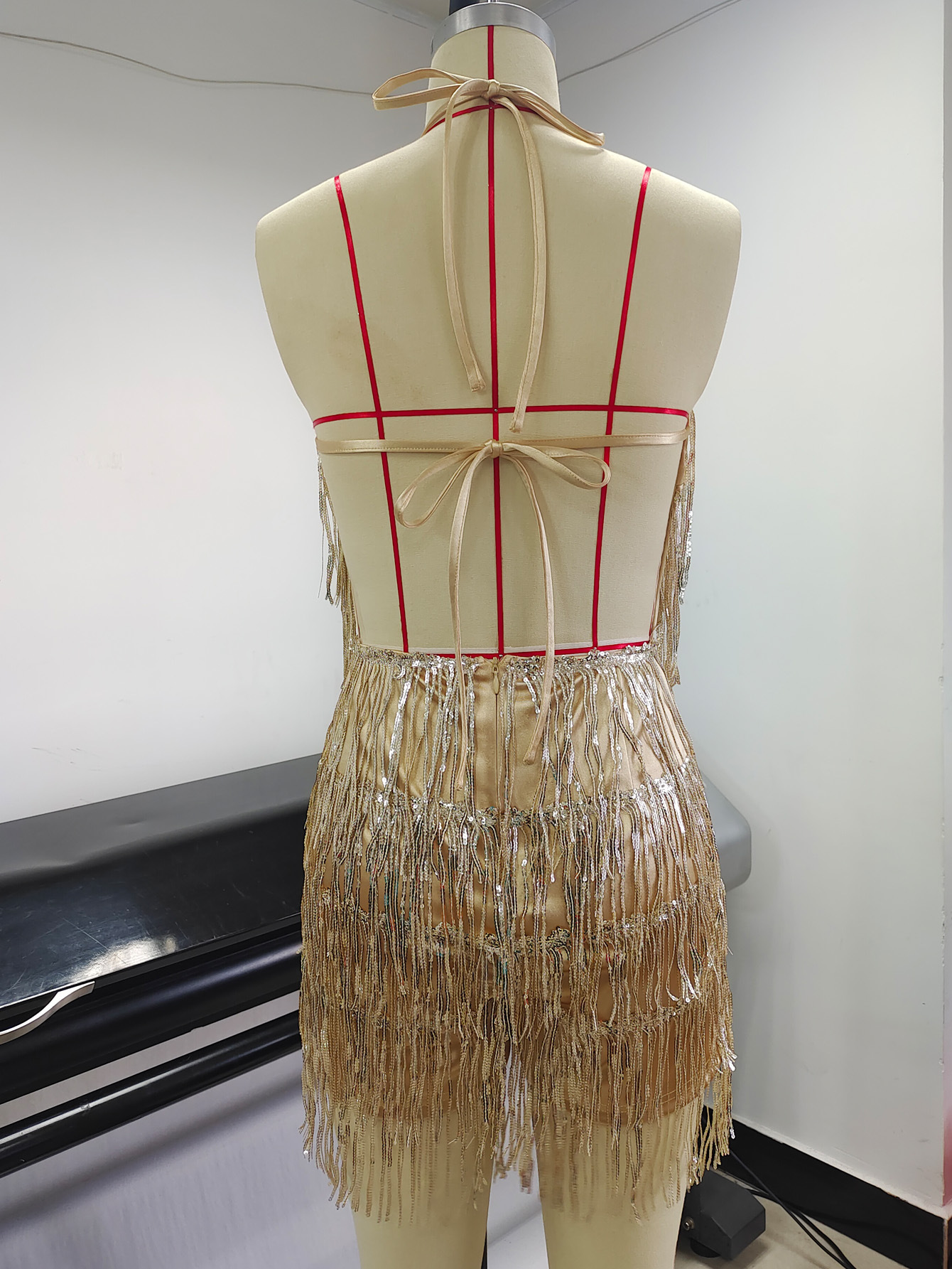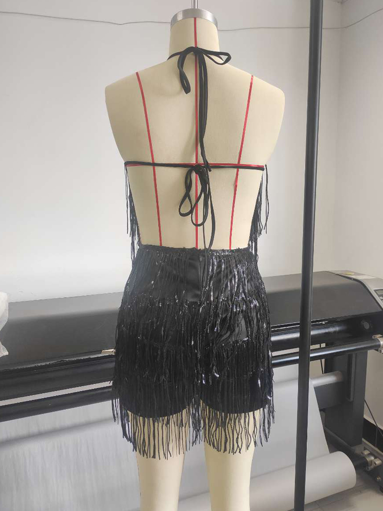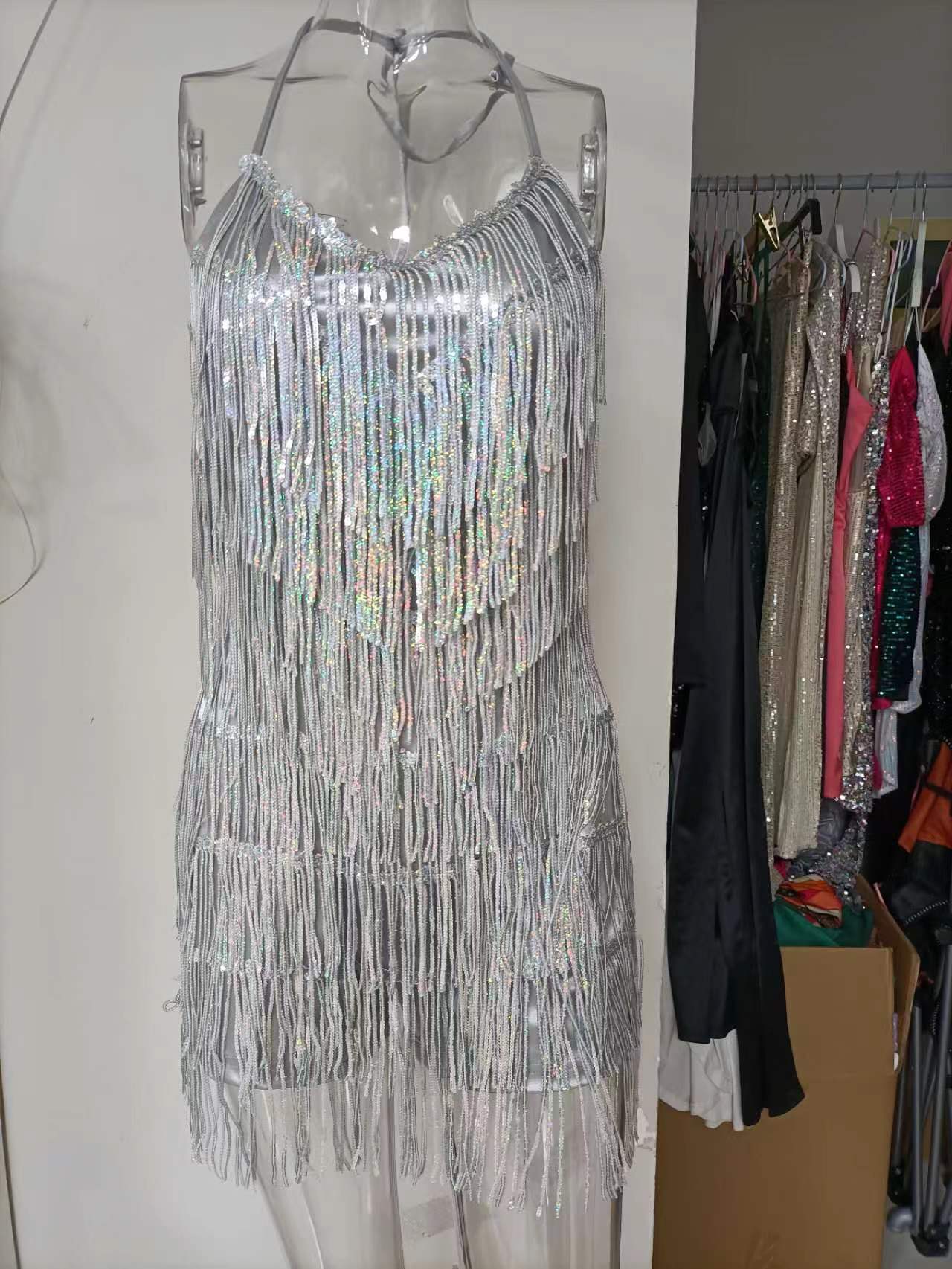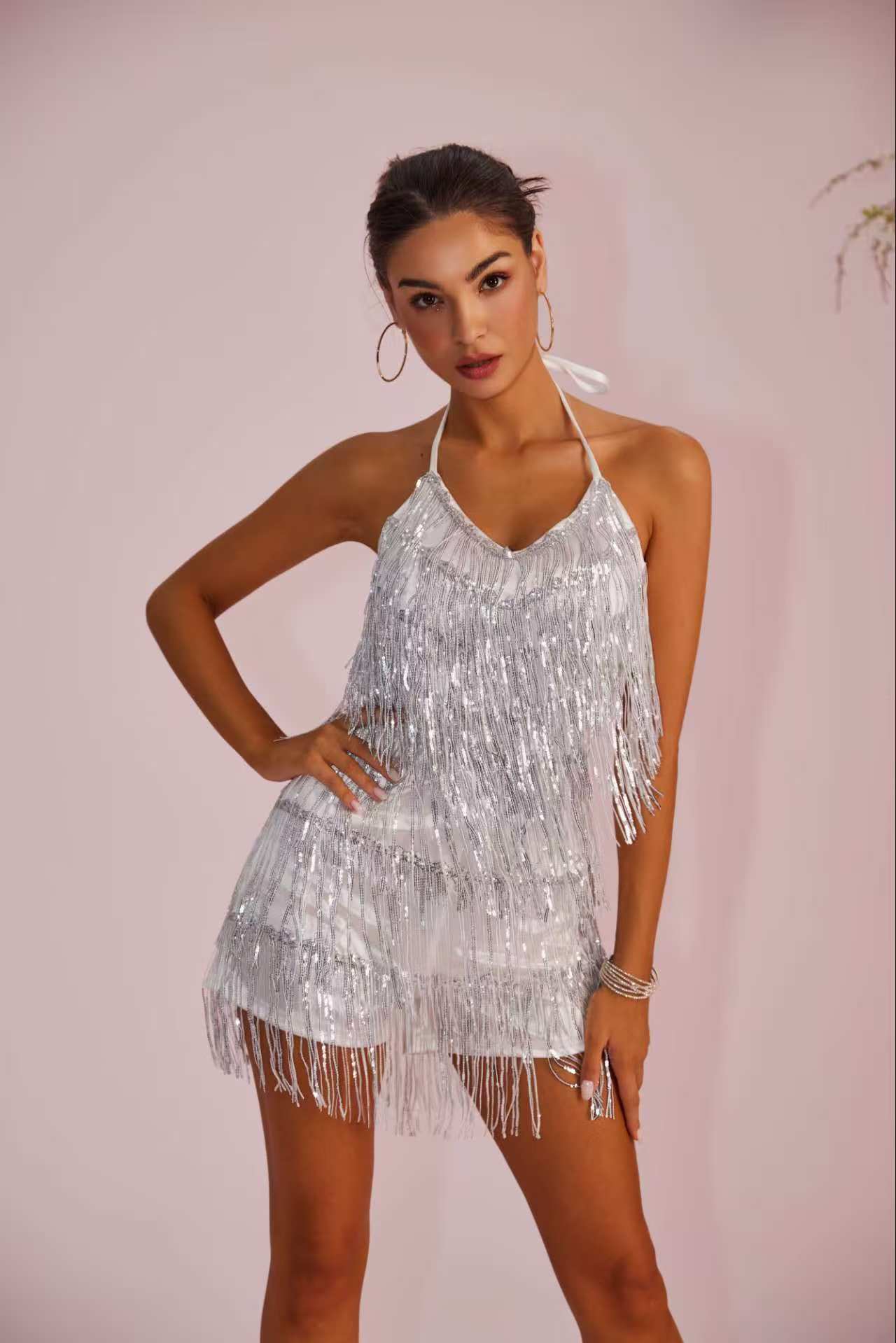 Womens Sequin Tassel Strap Dress