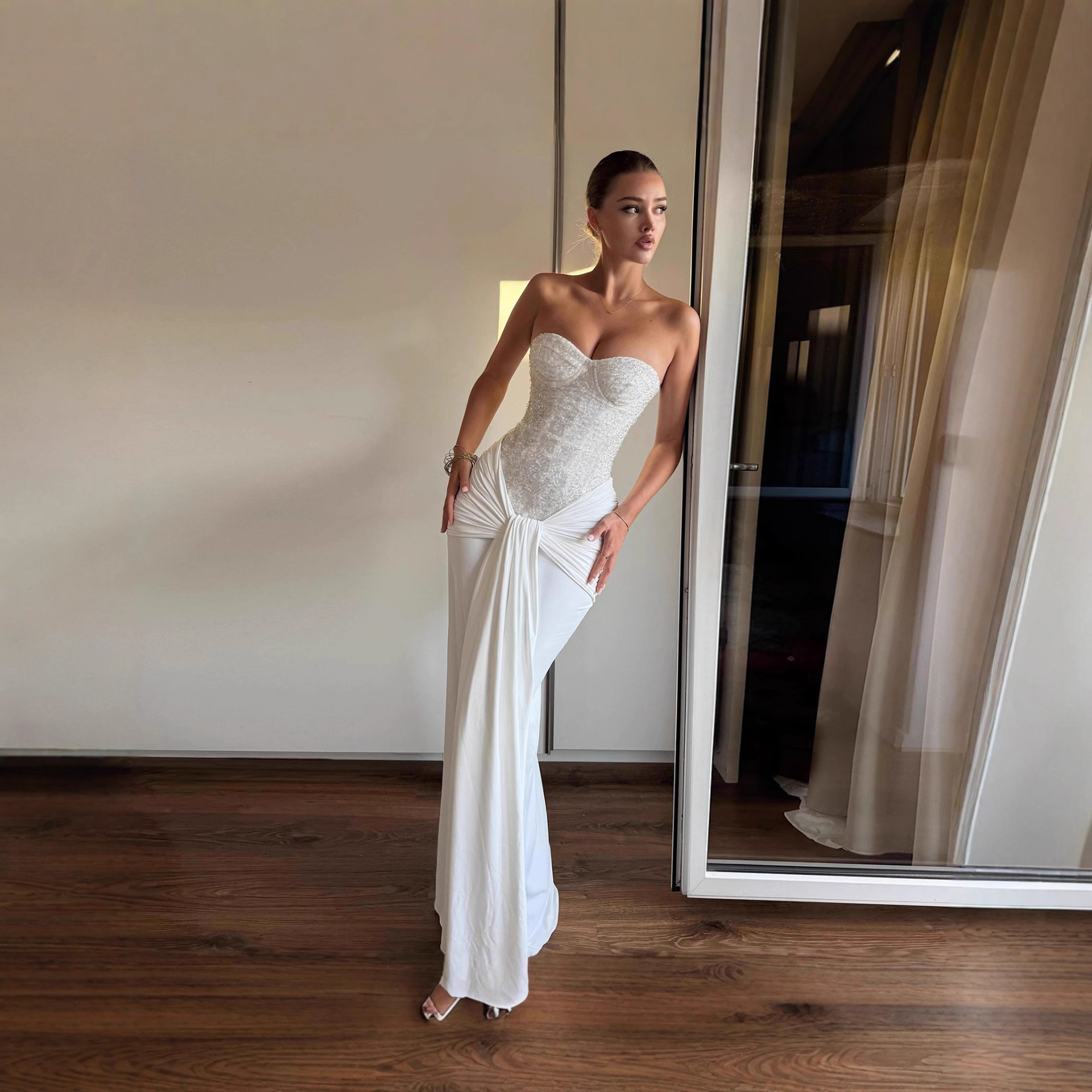 Womens Sexy Bandage Dress Adorned With Sparkling Rhinestones And Delicate Spaghetti Straps
