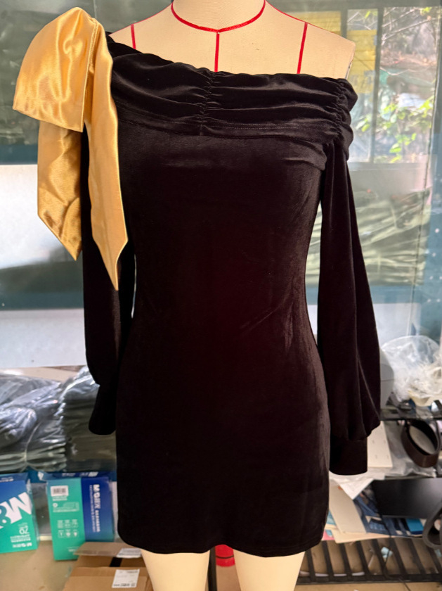 Womens Sexy Bodycon Tube Top With Contrasting Colors And Bow Detail
