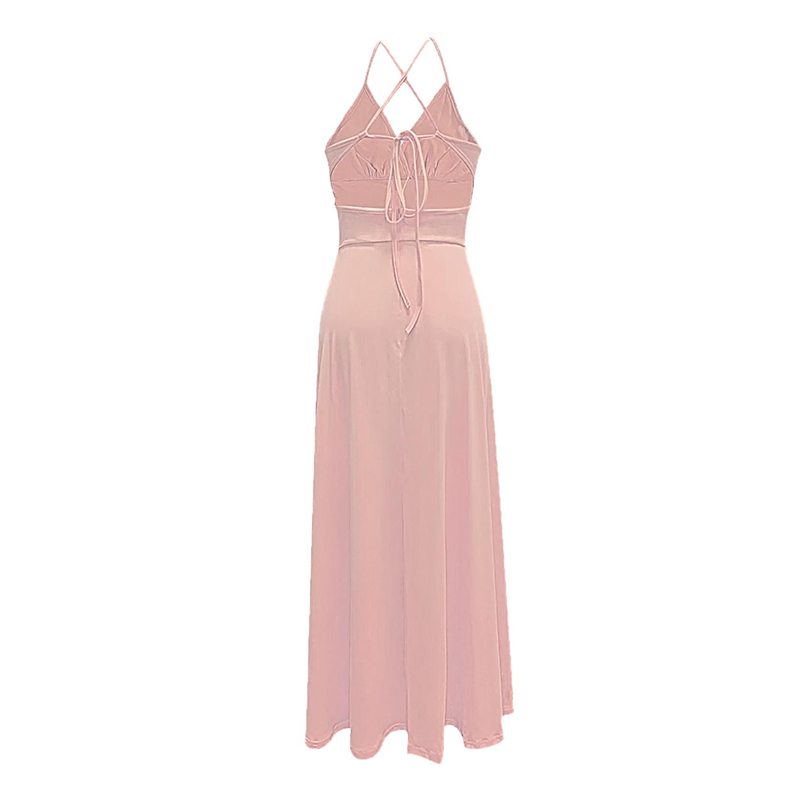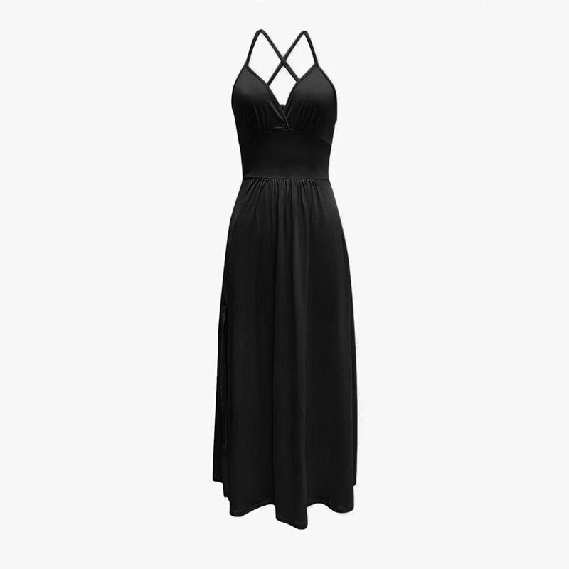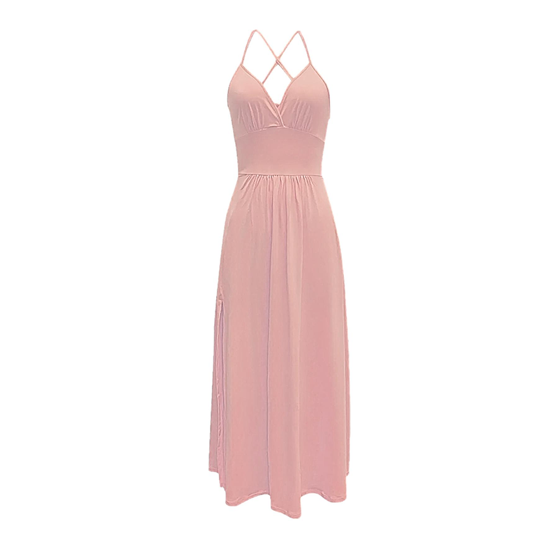 Women's Sexy Deep V Neck Maxi Dress Spaghetti Strap Sleeveless Backless High Slit Long Dress
