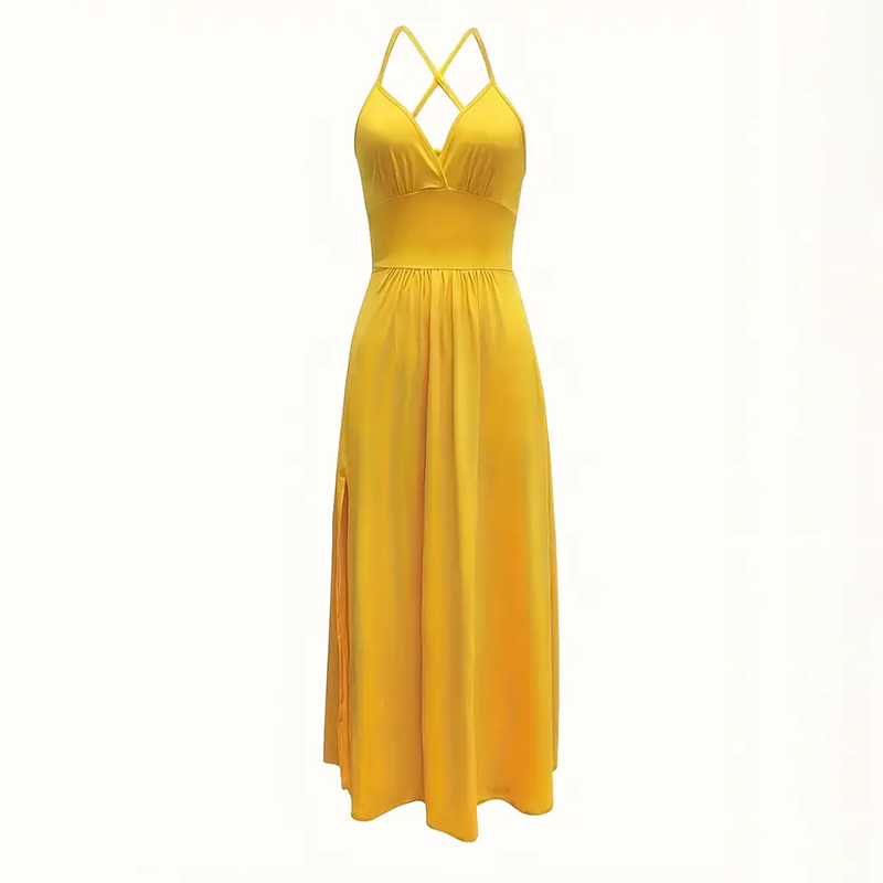 Command attention at any event in this maxi dress, designed for bold femininity. The daring deep V-neckline, sleek backless design, and high slit create an ultra-sexy silhouette, while the flowy maxi length adds elegant drama. Perfect for summer parties where you want to shine!